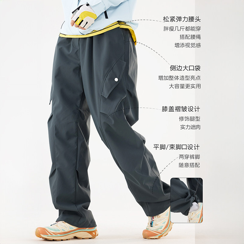 稻草人软壳冲锋裤男女款秋冬季三合一登山工装羽绒滑雪裤,专为户外爱好者设计。采用防风防水软壳面料,兼具透气性与耐磨性,有效抵御寒风与雨雪侵袭。三合一结构可拆卸内胆,内层填充优质羽绒,保暖轻盈,适应多变气候。立体剪裁搭配多口袋工装设计,兼顾实用与时尚,满足登山、滑雪、徒步等多种户外场景需求。男女同款版型,贴合人体工学,活动自如。无论是严寒山野还是城市通勤,这款多功能冲锋裤都能提供全天候防护与舒适体验,是秋冬户外出行的理想之选。