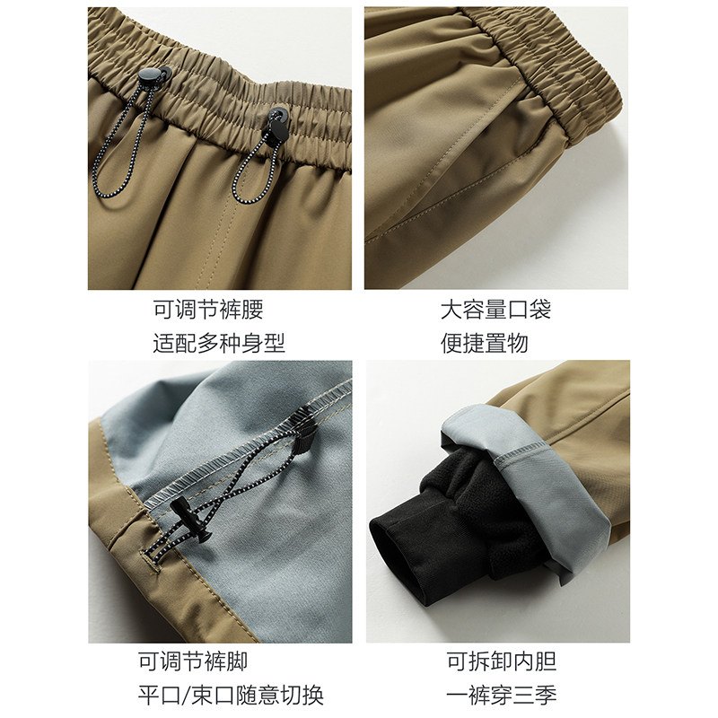 天猫稻草人软壳冲锋裤男女款秋冬季防风防水三合一登山工装羽绒滑雪裤