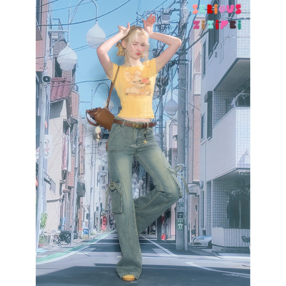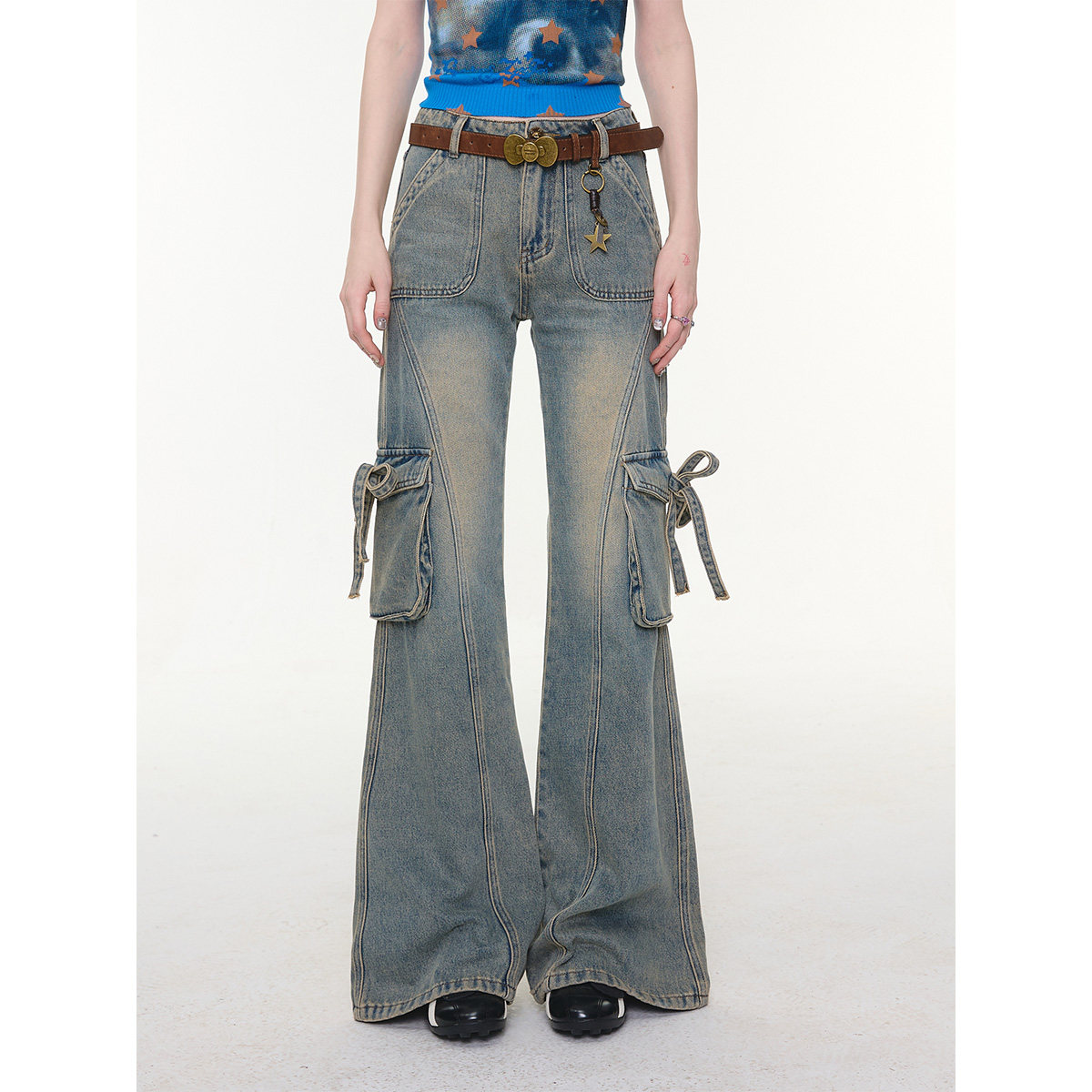 【蛋家】at!复古伐木风 街头复古宽松廓形工装牛仔裤女包邮