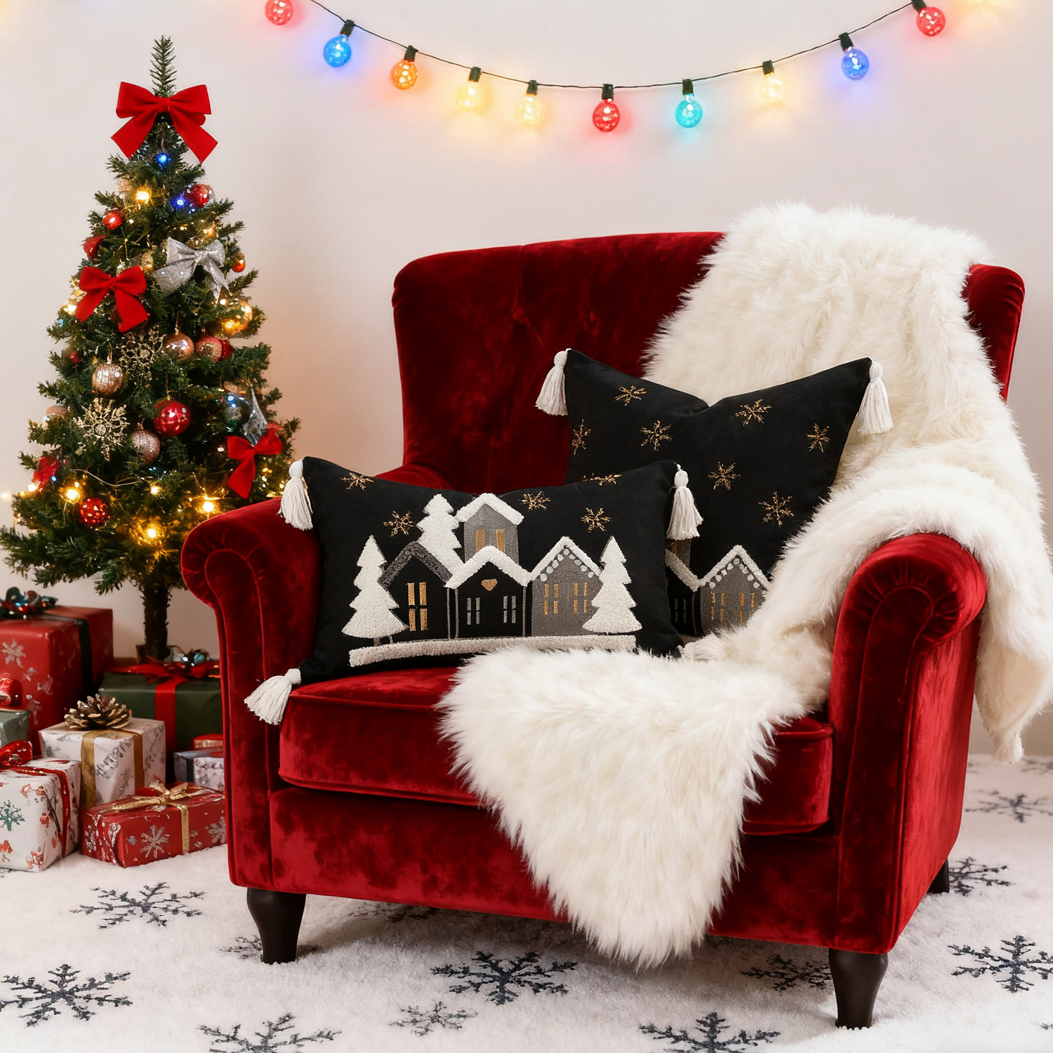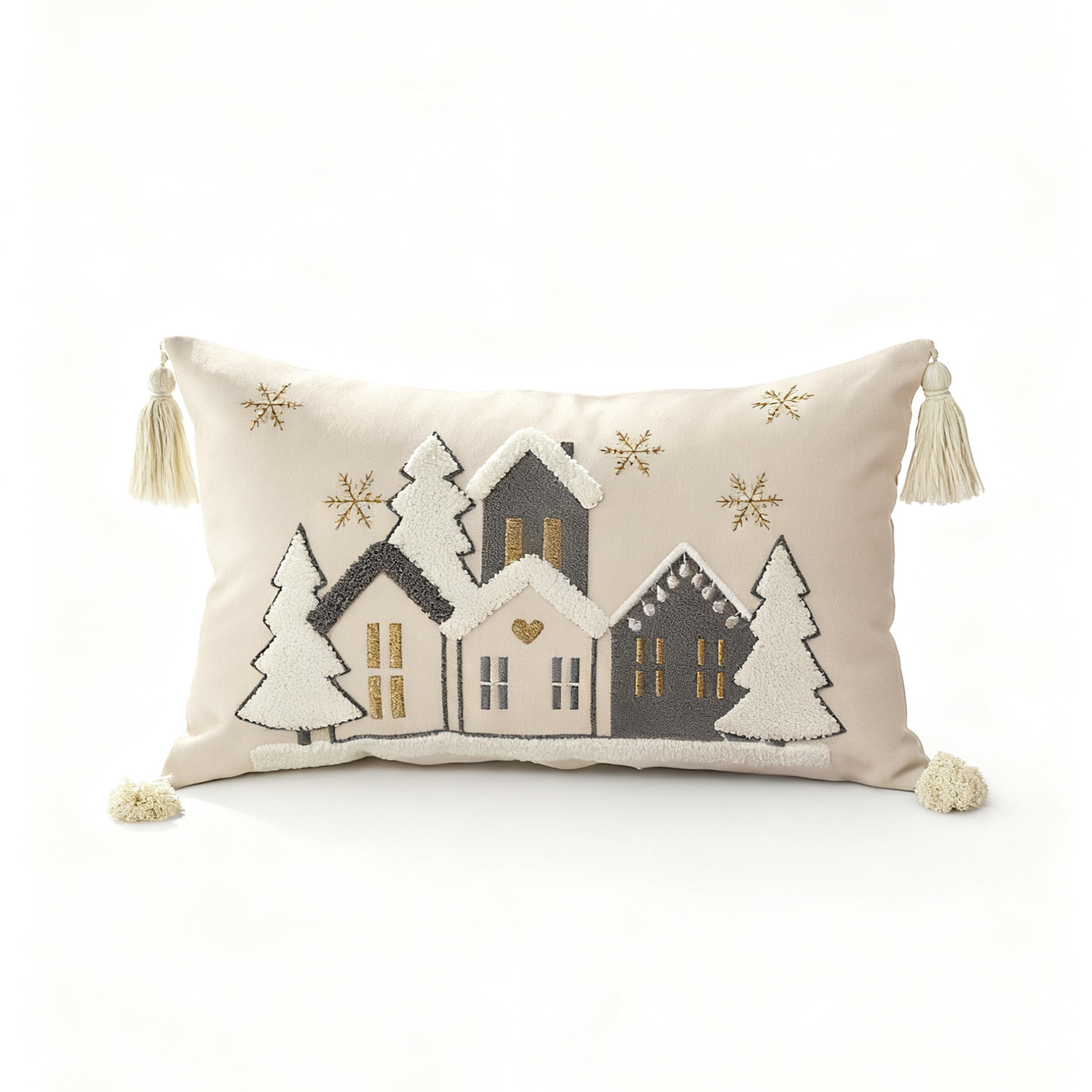 淘宝北欧风圣诞刺绣雪花靠垫套沙发客厅高级感创意可爱卡通波西米亚