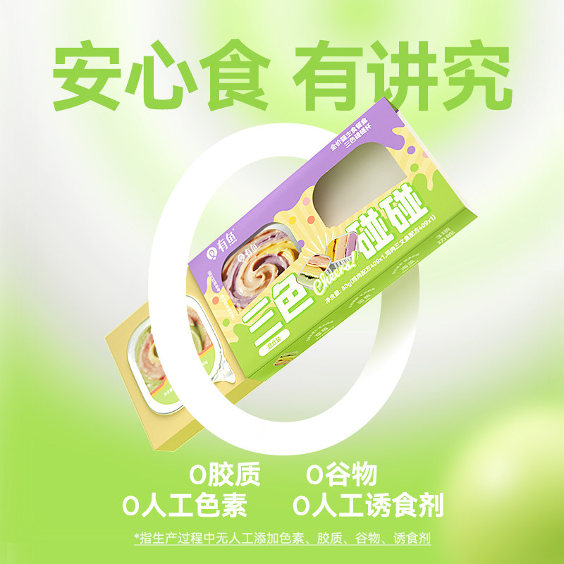 天猫有鱼三色碰碰杯主食餐盒成猫幼猫主食罐小鸟胃猫咪猫饭湿粮罐头