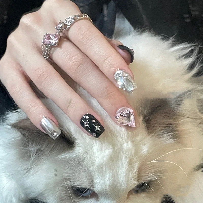 曼辞纯手工定制穿戴美甲,专为追求个性与便捷的时尚女性打造。这款黑色法式钻石假指甲采用高品质光疗材质,色泽饱满、质感细腻,边缘贴合自然,佩戴舒适。经典法式设计融合闪耀水钻点缀,低调中彰显奢华气质,适合日常通勤或派对场合。可拆卸设计无需胶水,轻松粘贴、无损真甲,重复使用更环保。每套贴片均按亚洲女性甲型精准剪裁,提供多尺寸选择,适配不同手型。曼辞坚持匠心工艺,每一片指甲都经过精细打磨与质检,确保美观与安全并存。让美丽无需等待,指尖魅力一贴即现。
