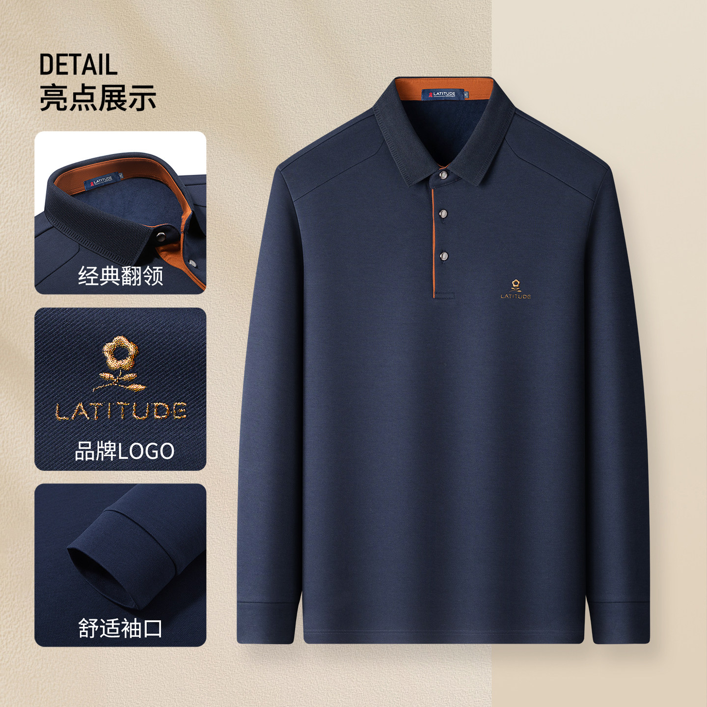 天猫抓绒内里-梦特娇男士秋冬季长袖t恤加绒加厚拼接肩型商务Polo衫Z