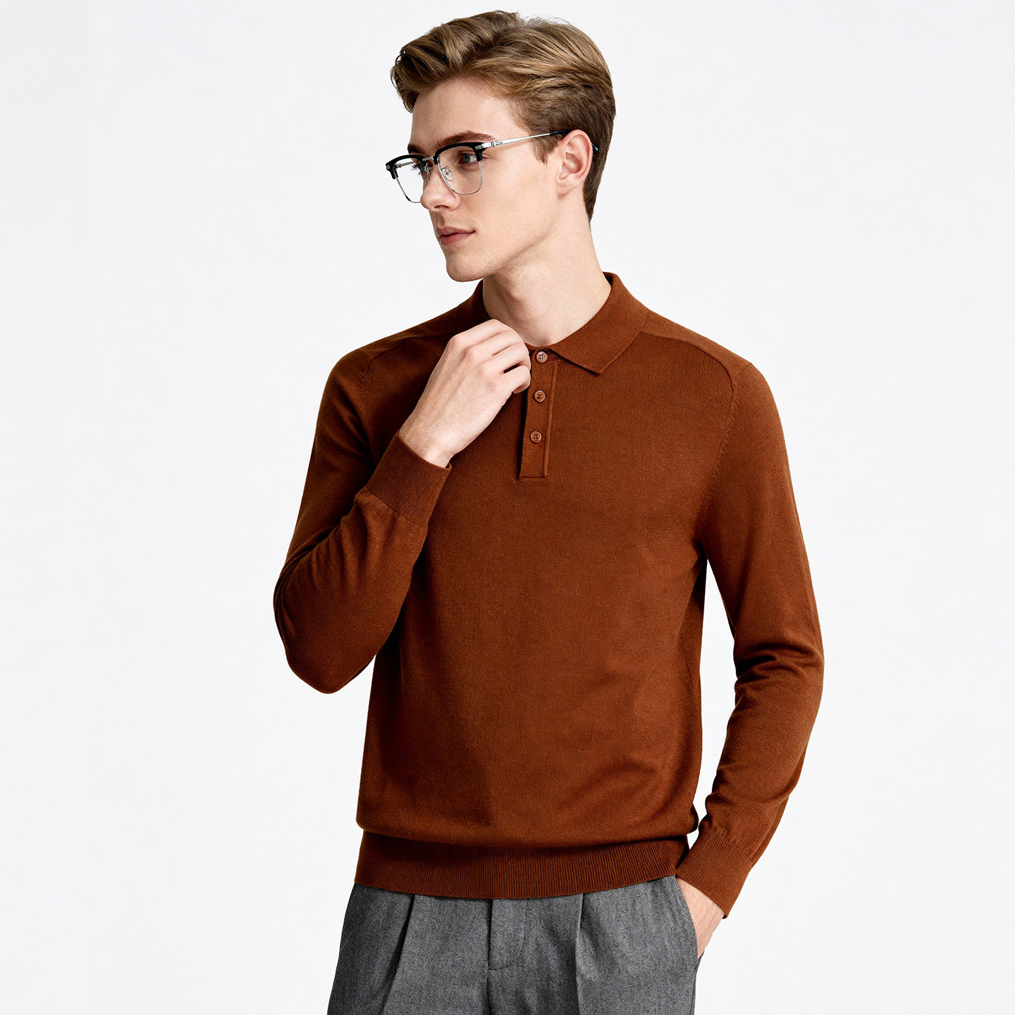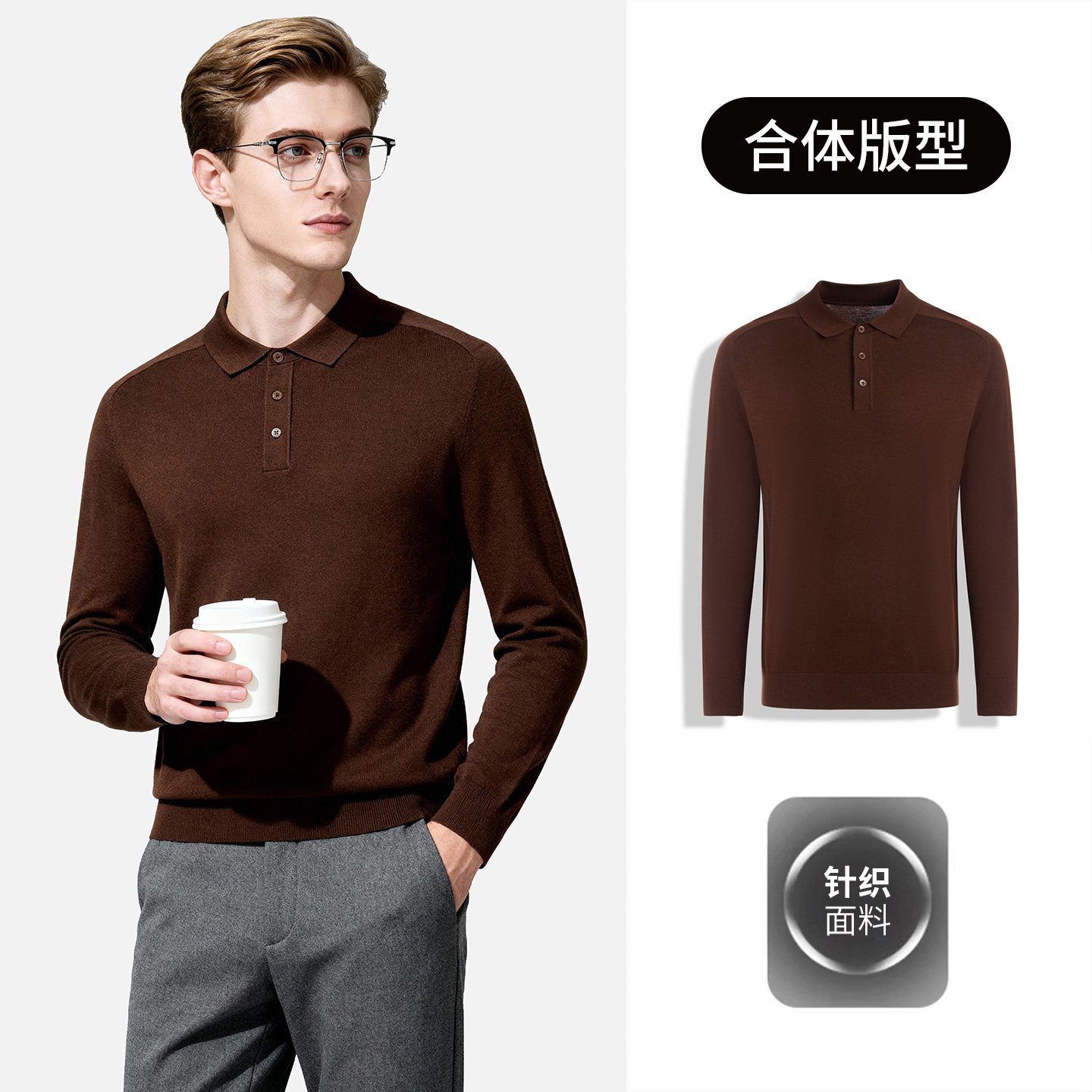 天猫【含绵羊毛&门店同款】圣得西2025秋新款男士翻领混纺针织POLO衫