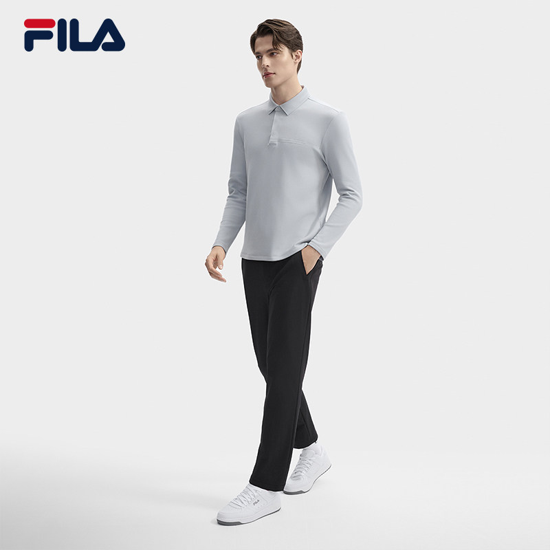 天FILA 斐乐官方男子针织长袖POLO衫2025春季新款网球运动基础上衣