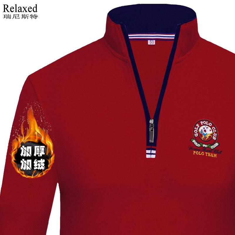 淘宝冬季长袖t恤男立领加绒加厚 半拉链卫衣高领POLO衫高档男装上衣服