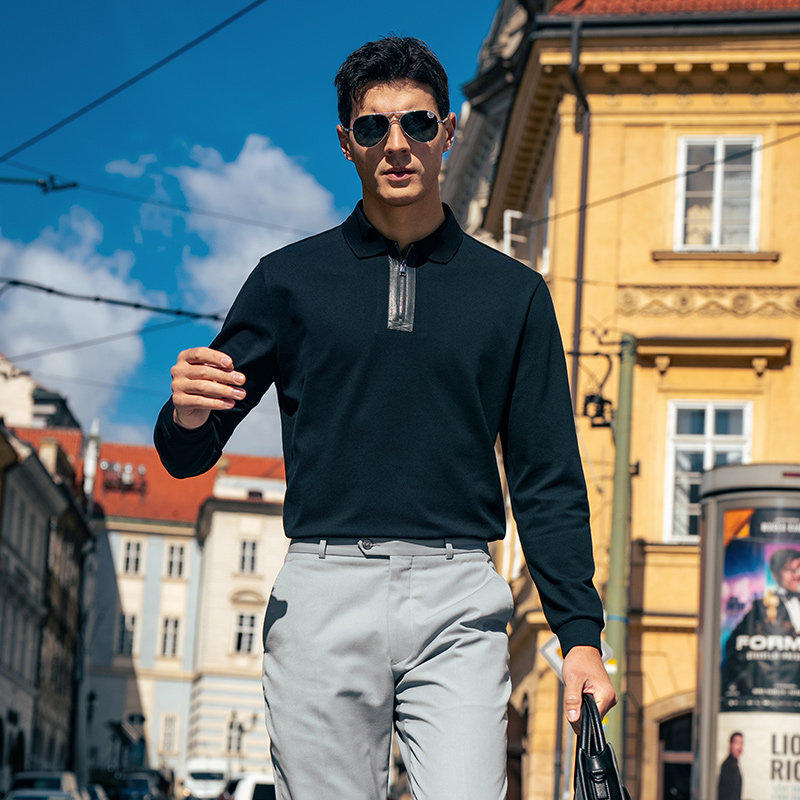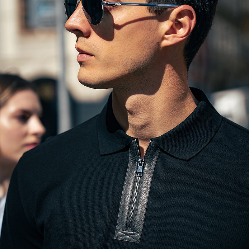MrBu布先生2025秋冬新款BT16863真皮拉链门襟长袖Polo衫,融合经典与时尚,专为都市男士打造。采用优质真皮拉链门襟设计,质感细腻,开合顺滑,彰显低调奢华品味。经典翻领剪裁,修饰颈部线条,干练有型。精选高支棉质面料,亲肤透气,挺括有型,适合秋冬季节日常通勤或休闲场合。袖口与下摆做工精致,细节考究,展现品牌匠心工艺。简约而不简单的版型设计,轻松搭配西裤或休闲裤,尽显儒雅绅士风范。MrBu布先生以品质诠释男性魅力,是追求品味与舒适并重的理想之选。