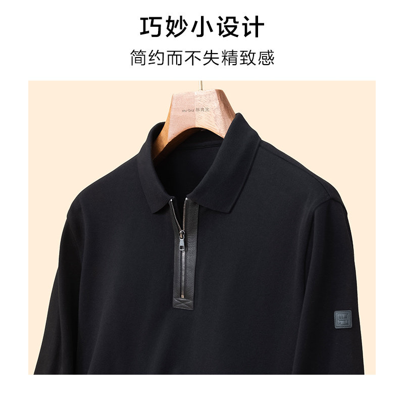 天猫MrBu布先生真皮拉链门襟长袖polo衫2025秋冬款翻领上衣男BT16863