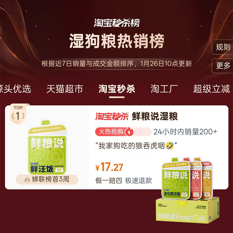 天猫【秒杀】鲜粮说旗舰店狗饭餐盒湿粮幼犬小型犬通用狗狗主食罐头