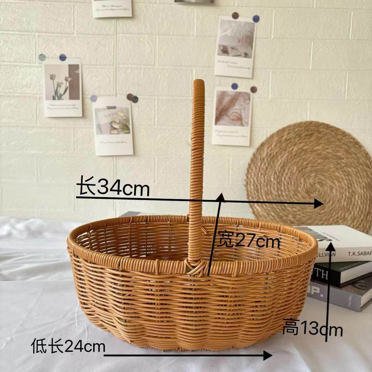 淘宝手提家用野餐篮子收纳手工编织塑藤编水果篮月子花篮鸡蛋篮