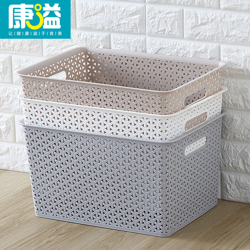 天猫康溢塑料收纳筐浴室收纳盒零食储物整理框篮子长方形洗漱筐置物篮