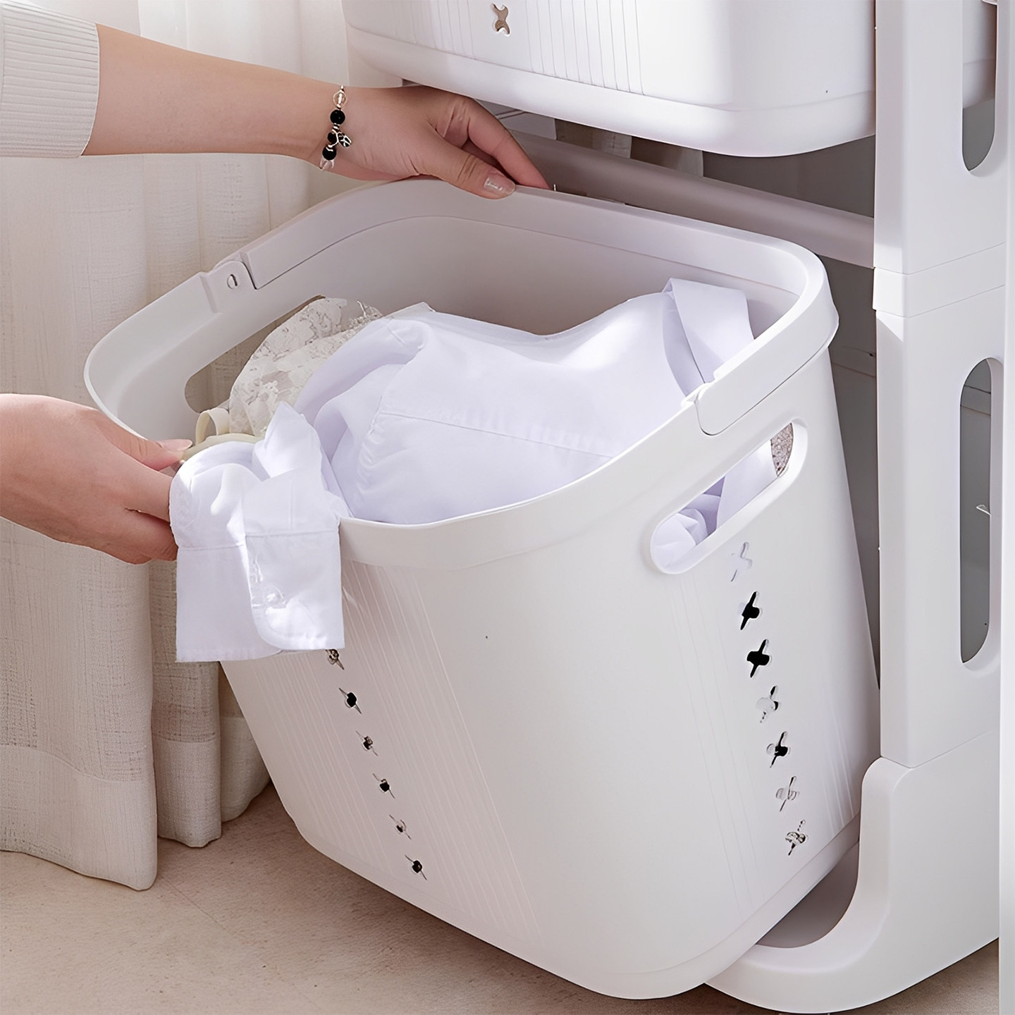 居家家脏衣篓收纳筐是一款集实用与美观于一体的多功能家用收纳篮,适用于卧室、阳台、洗衣房等多个场景。采用环保材质制作,结实耐用,承重力强,可轻松容纳日常换洗衣物、毛巾或杂物。开放式设计搭配镂空透气结构,有效防潮防异味,保持衣物干爽。部分款式配备万向轮,移动便捷,轻松推拉至洗衣机旁。落地式置物架设计节省空间,稳固不倾倒,还可用于收纳玩具、书籍等物品。简约时尚的外观适配各种家居风格,既是实用的洗衣助手,也是提升居家整洁度的贴心好物。