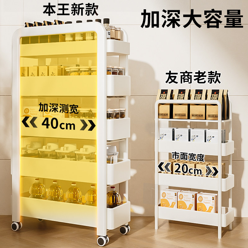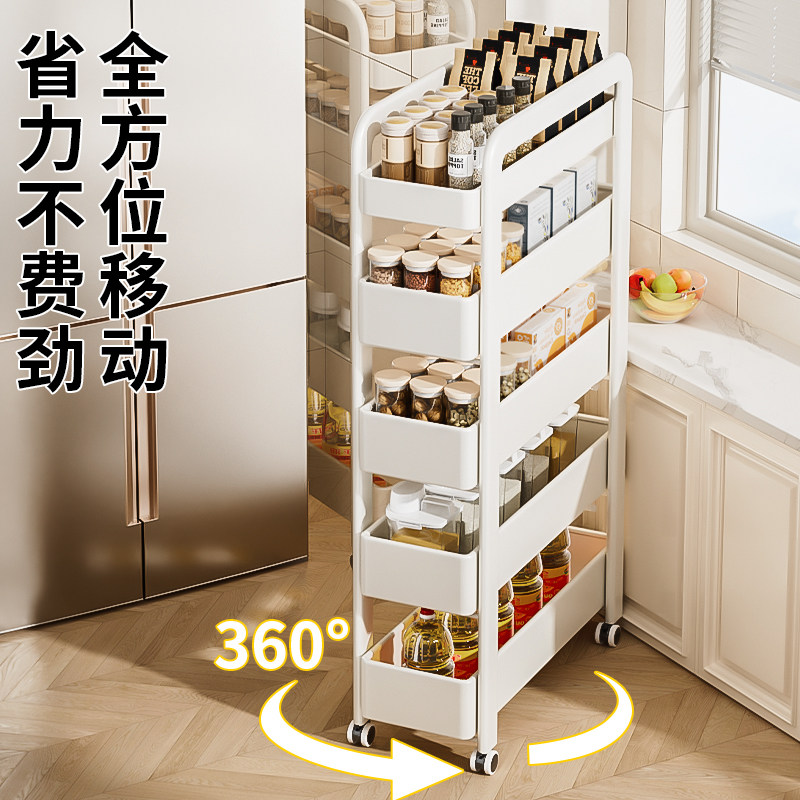 天猫厨房门后夹缝置物架冰箱侧边极窄缝抽拉篮缝隙收纳柜卫生间小推车