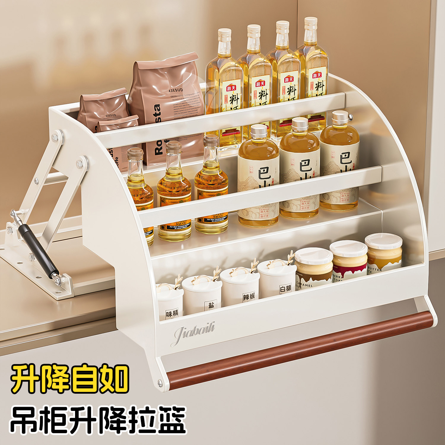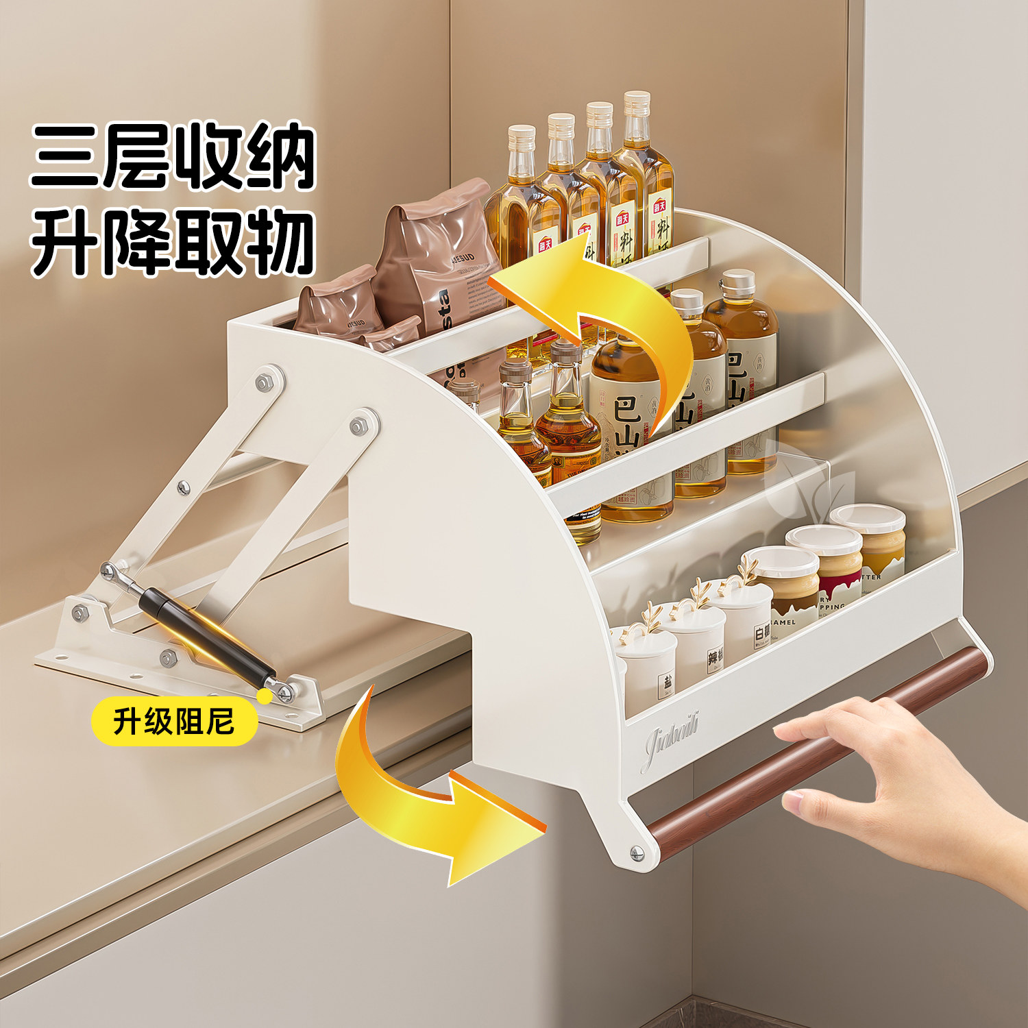 淘宝吊柜升降拉篮厨房橱柜内上下拉式调味拉篮顶柜分层伸缩收纳置物架