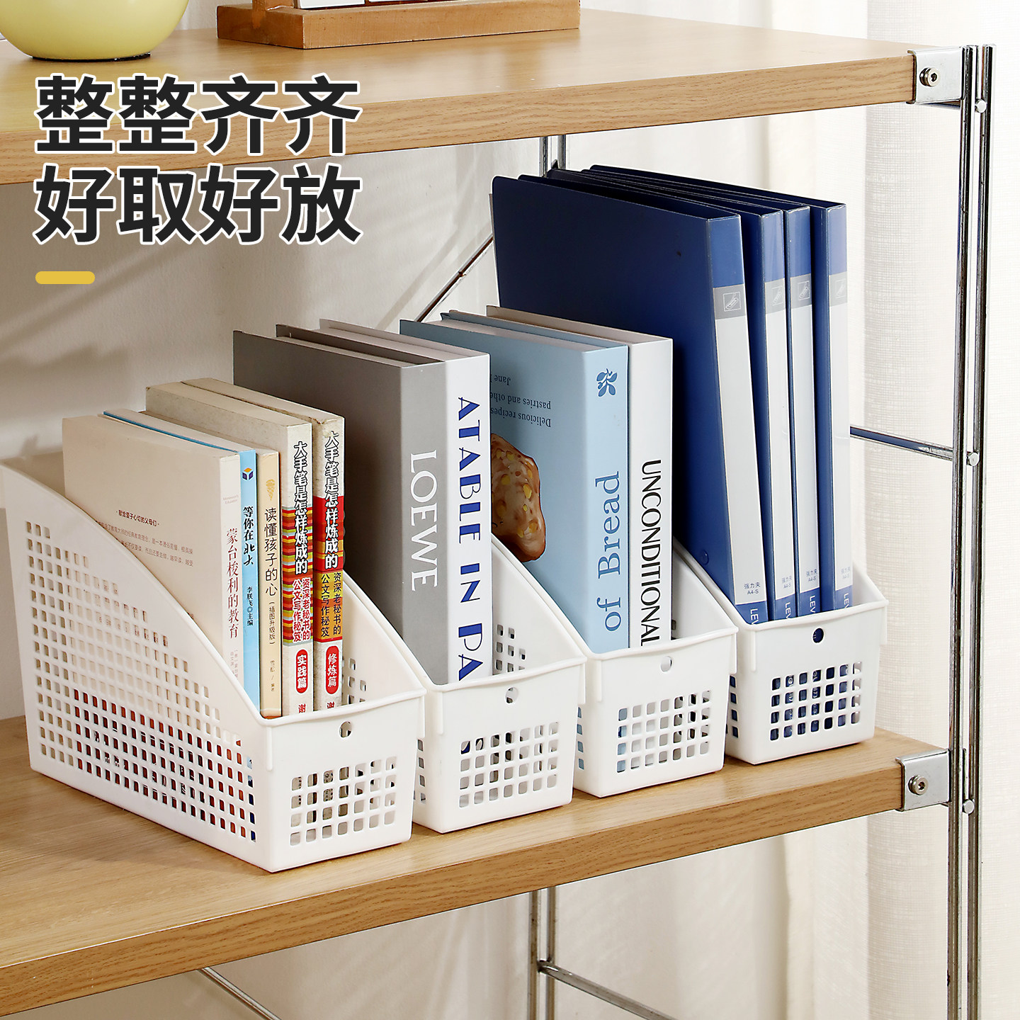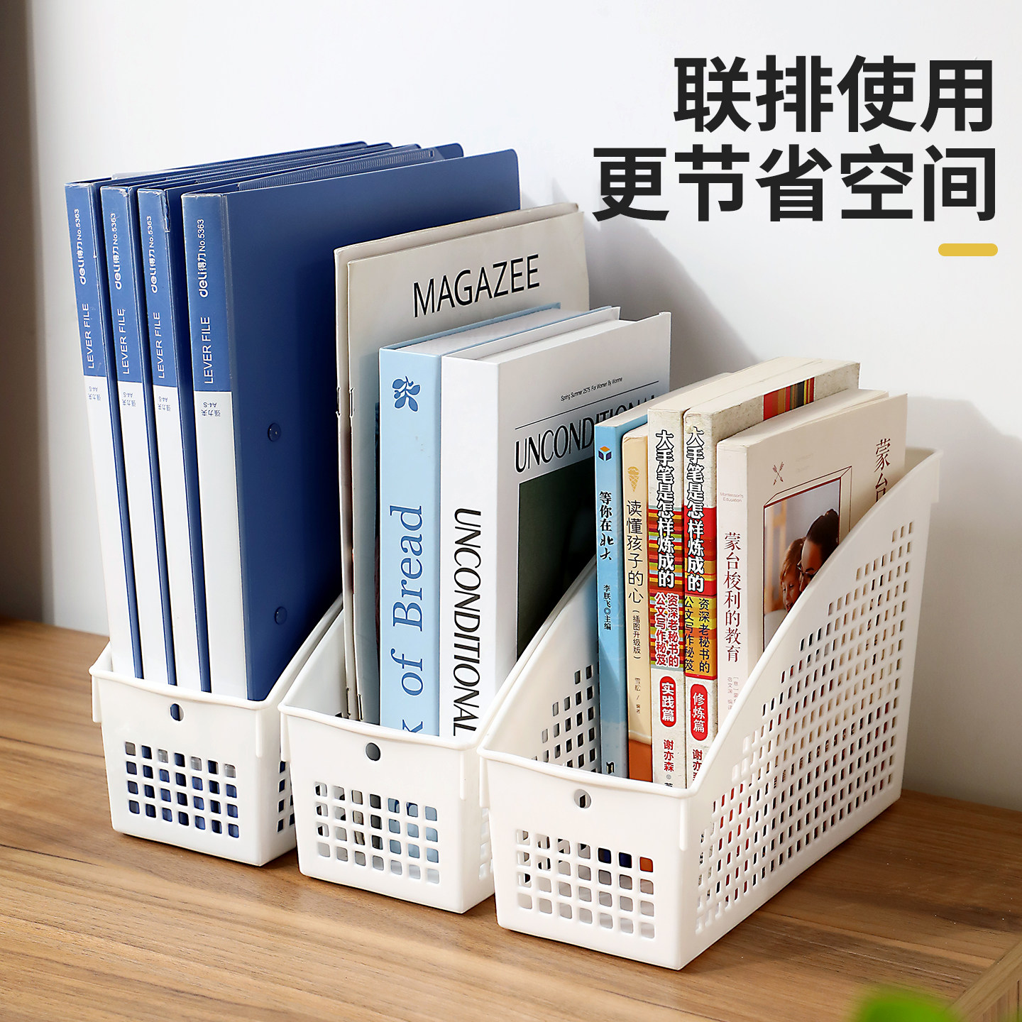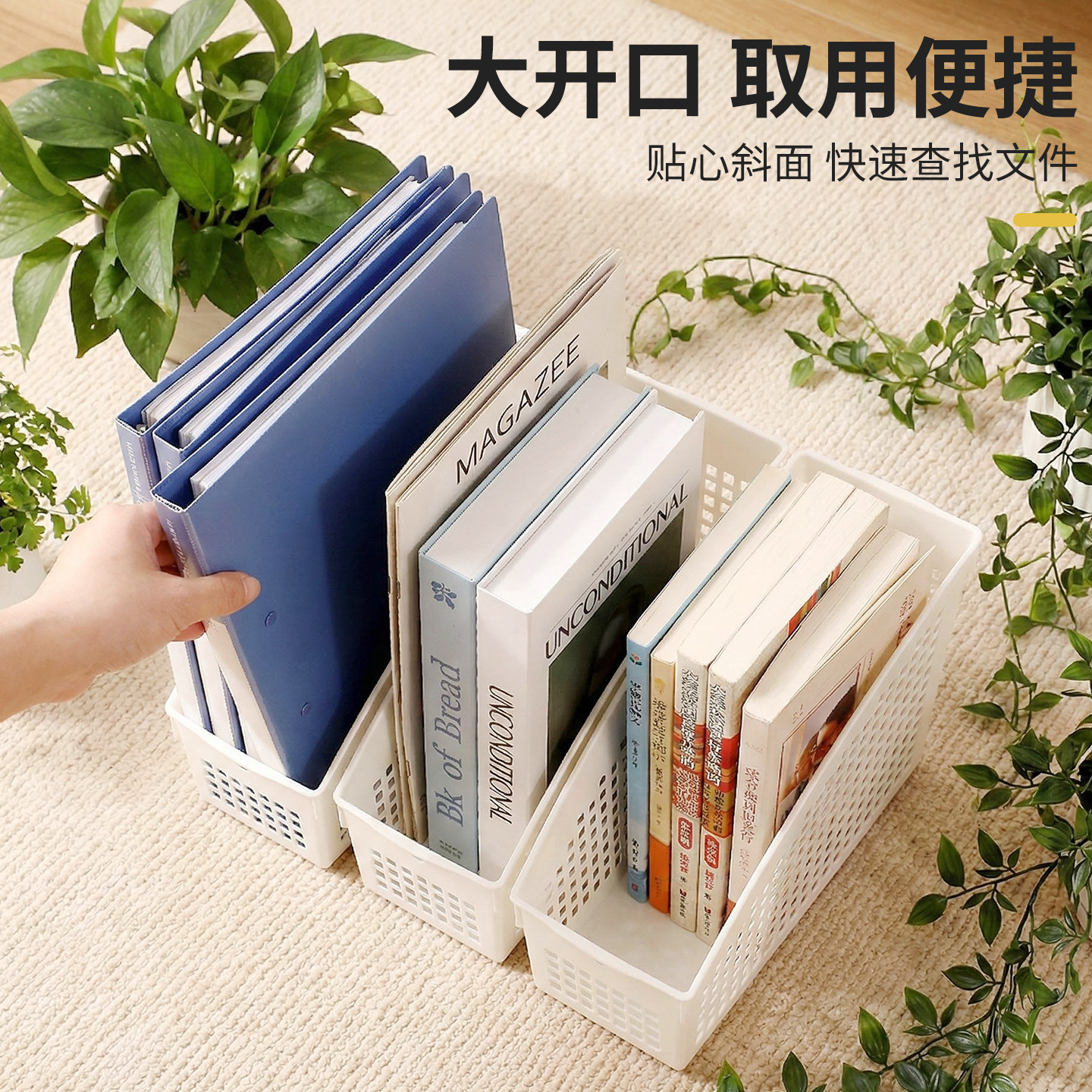 加厚桌面收纳筐,专为办公环境设计,采用优质环保PP材质,结构坚固耐用,承重力强。立式设计有效节省桌面空间,轻松收纳A4文件、档案资料、笔记本及各类办公杂物,保持桌面整洁有序。篮身通透可视,方便快速查找所需物品;边缘光滑圆润,使用安全舒适。底部防滑设计,稳固不滑动。适用于办公室、书房、财务室等场景,是提升工作效率的理想收纳工具。简约实用,美观大方,让杂乱桌面瞬间焕然一新。