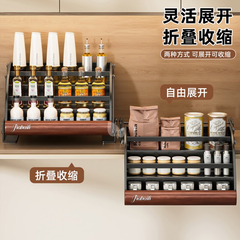 抽拉式置物架橱柜内分层架子厨房多功能调料收纳盒深柜内抽屉拉篮