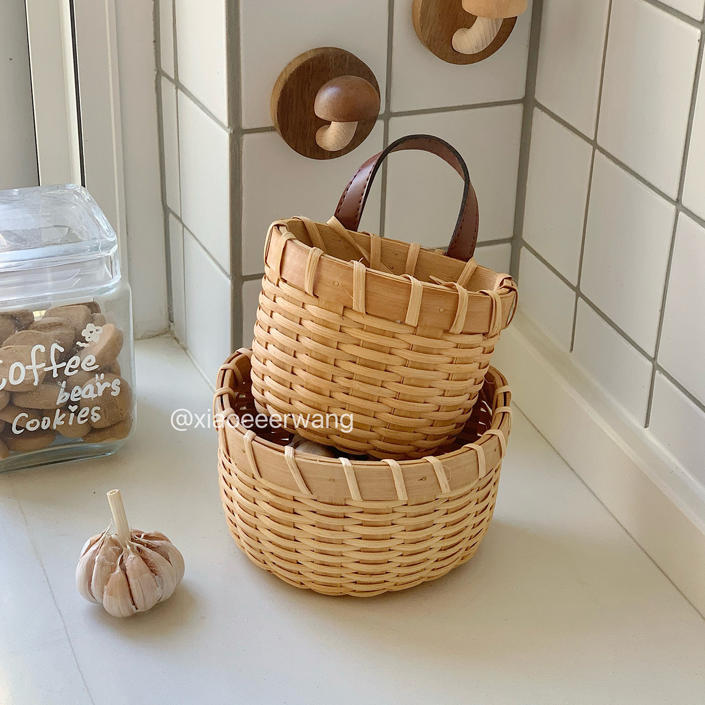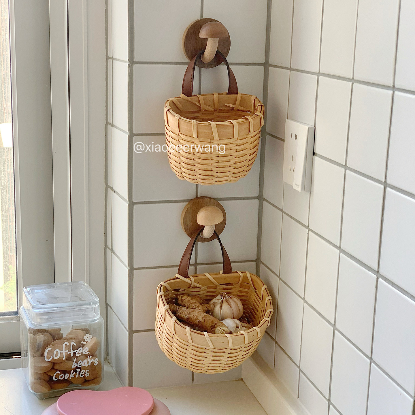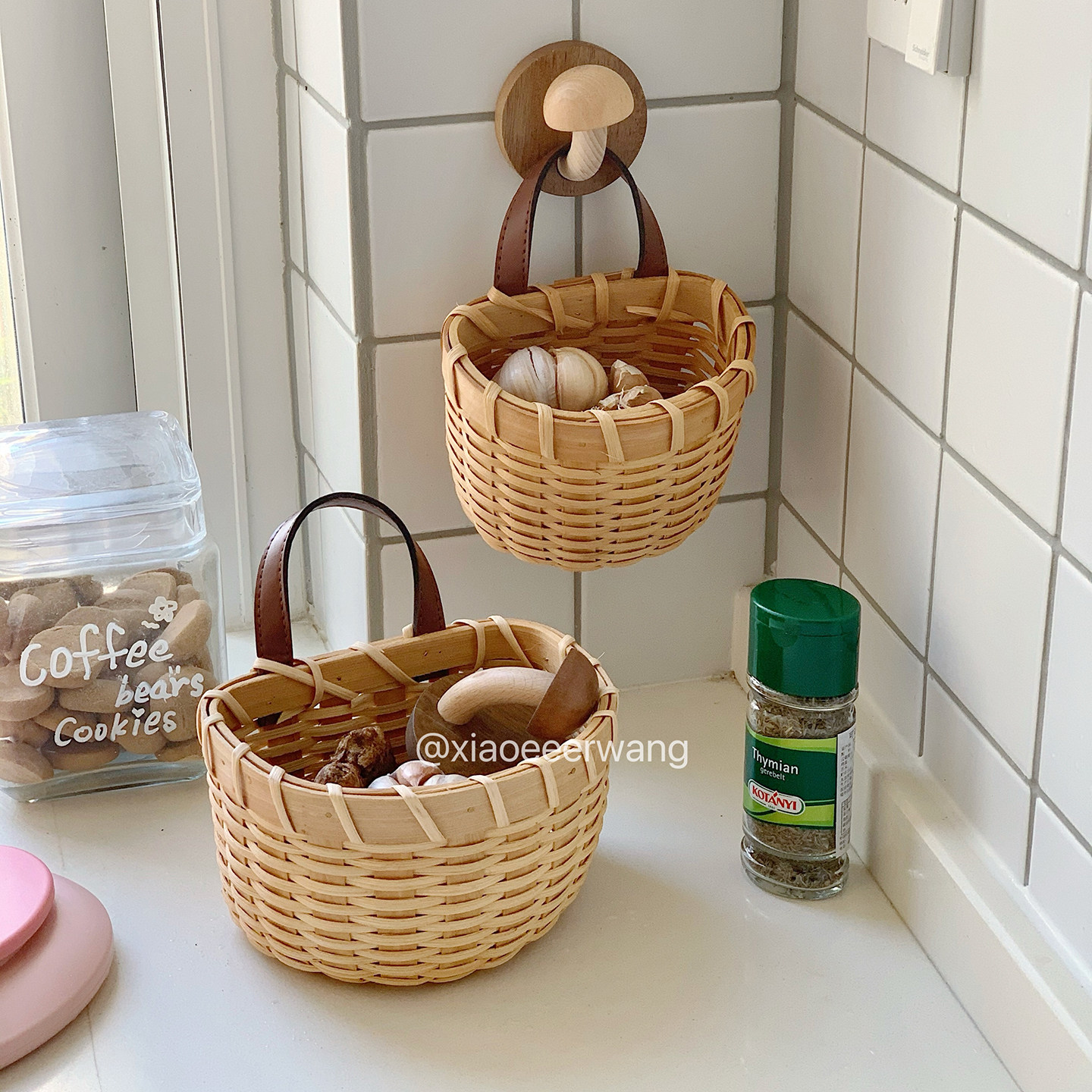 淘宝厨房姜蒜收纳筐藤编篮子壁挂小篮子家用手提编织鸡蛋筐悬挂置物篮