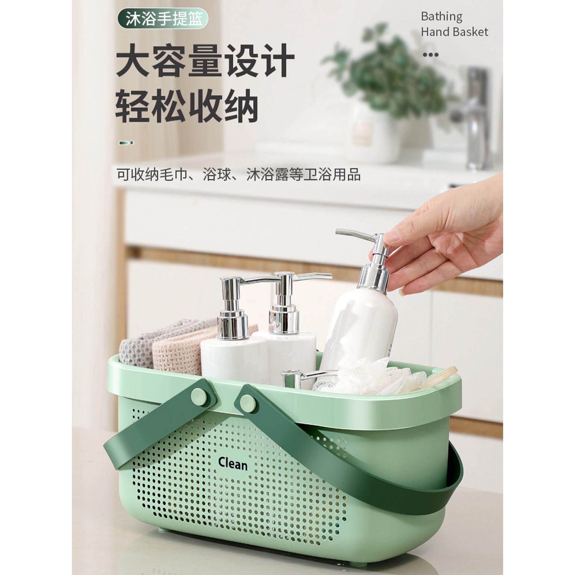淘宝日本篮子洗澡手提大学生宿舍沐浴露洗漱用品干湿分离浴室收纳筐拎