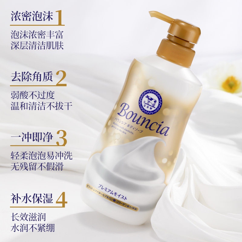 天猫日本COW进口牛乳石碱沐浴露美肤牛奶美白泡泡滋润护肤沐浴乳460ml
