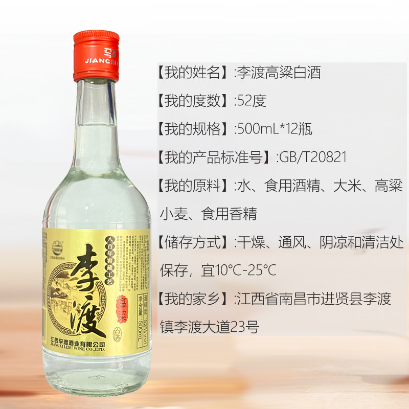 2021年李渡高粱酒52度李渡金标500ml*6瓶/12瓶高粱酒陈年老酒