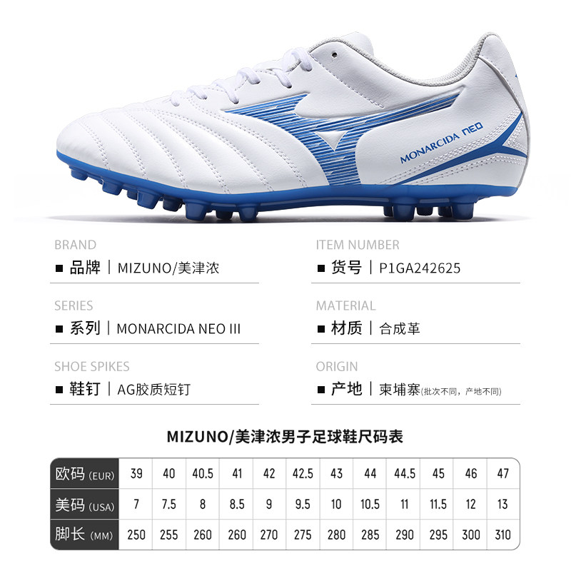 天猫Mizuno/美津浓足球鞋男中端AG短钉人造草成人训练鞋P1GA2426-25