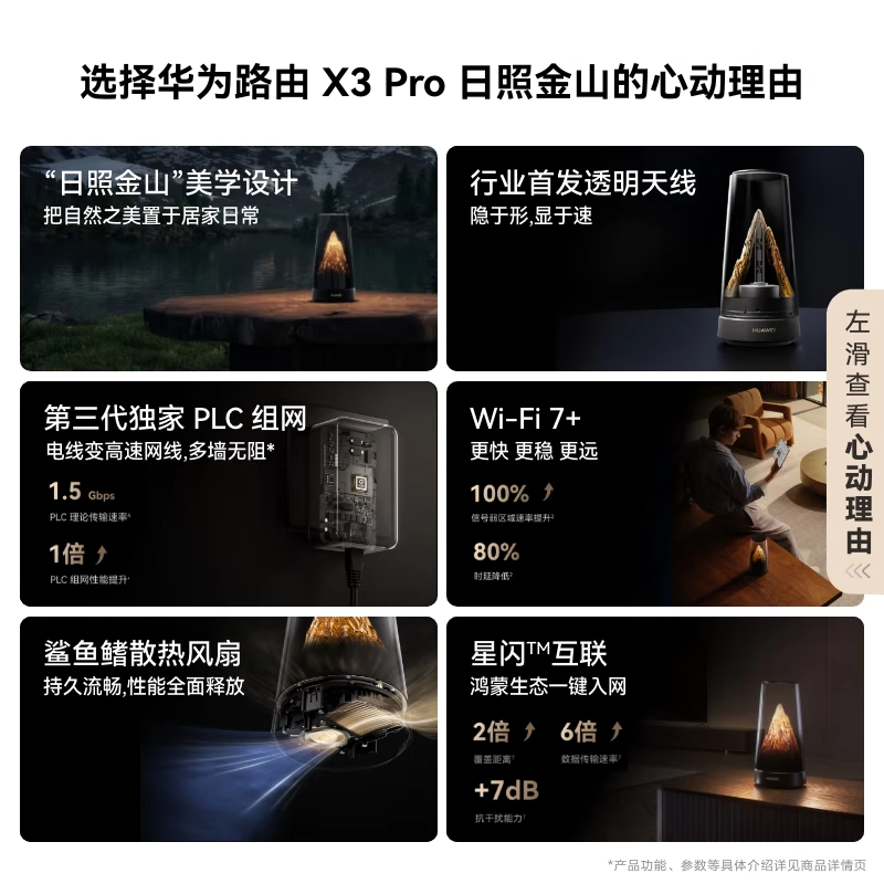 天猫【日照金山】华为路由X3Pro子母路由器家用高速千兆2.5G网口无线WiFi7+2025年新款全屋覆盖穿墙王大户型别墅