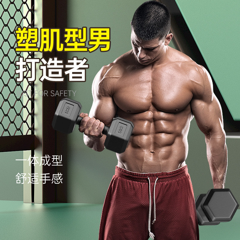 天猫哑铃男士健身家用器材女壶铃练臂肌一对包胶六角亚玲套装宿舍学生