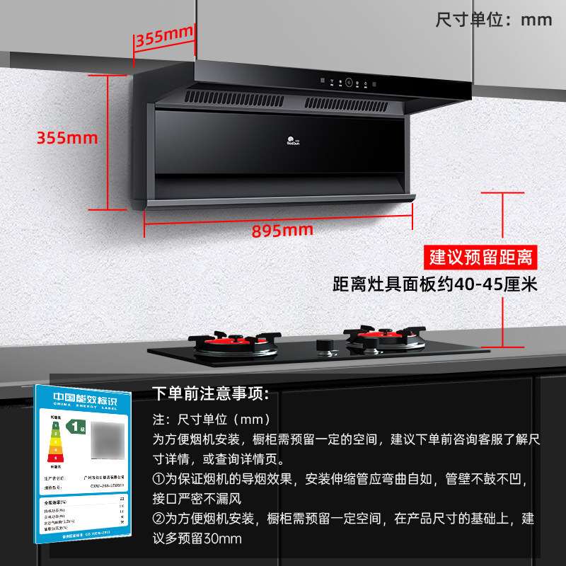 天森太顶侧双吸B880BYL直流变频大吸力抽油烟机套装家用燃气灶套餐
