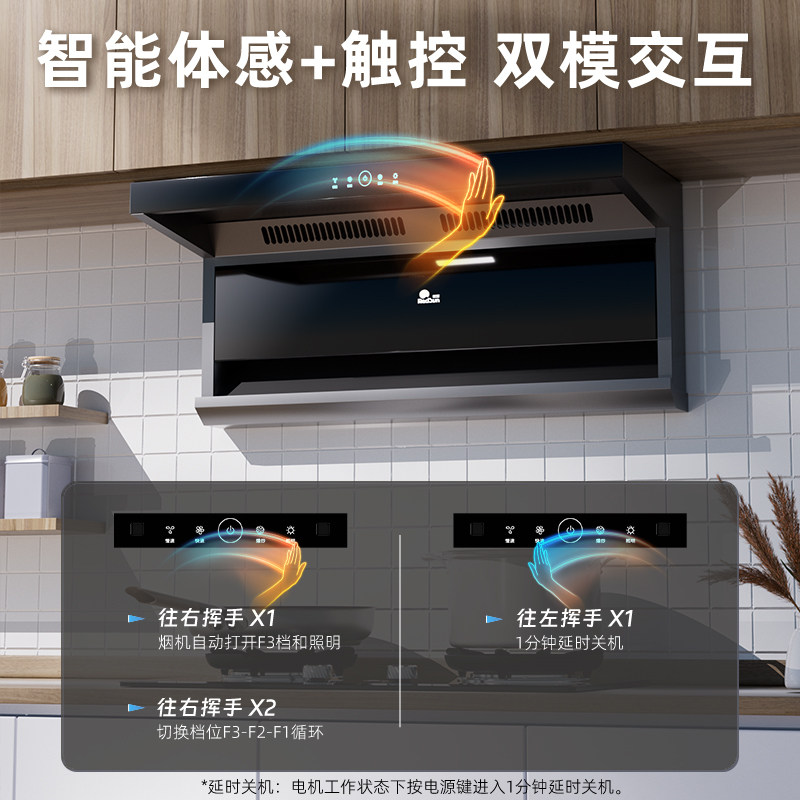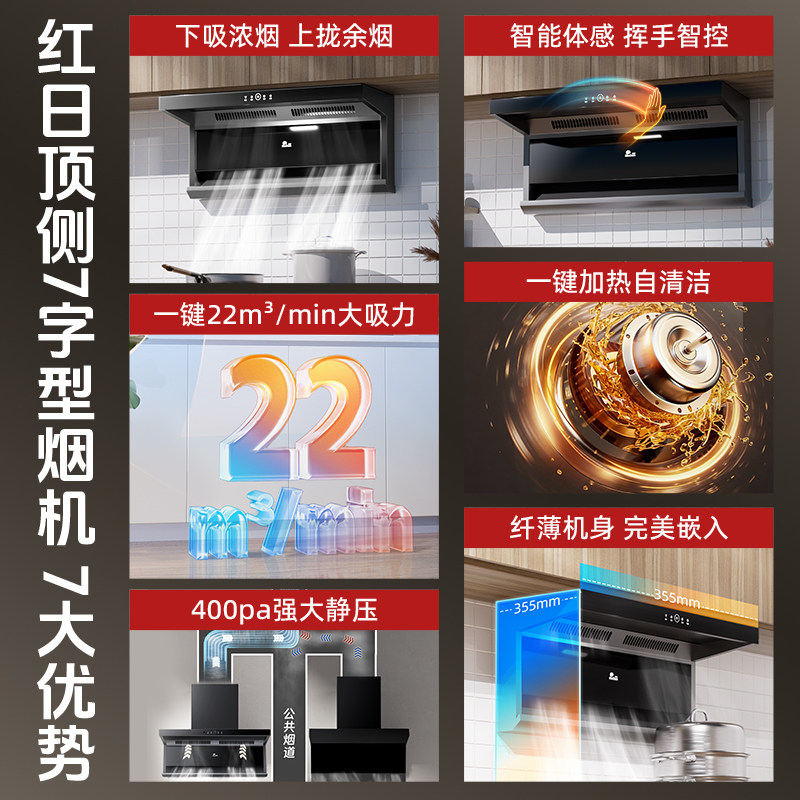 天猫红日抽油烟机家用厨房顶侧双吸7字型大吸力自动清洗吸烟机LEU31H