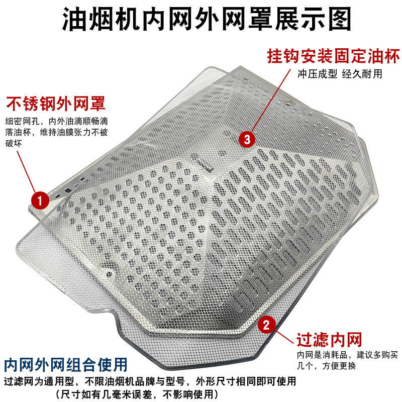 淘宝油烟机不锈钢过滤网六角内网通用型防油罩家用外网油盒杯外罩通用