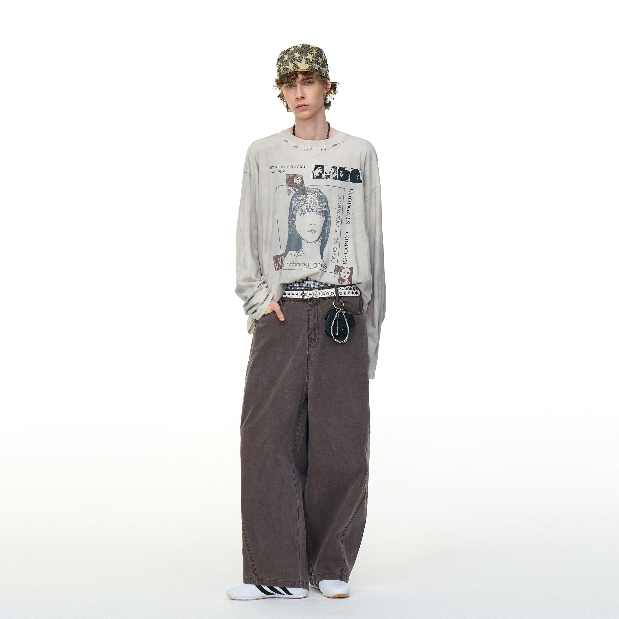MRNEARLY美式复古做旧破洞人物印花长袖T恤,融合经典美式街头风格与复古做旧工艺,展现不羁潮流态度。采用宽松剪裁设计,穿着舒适自在,适合日常休闲穿搭。衣身点缀个性人物印花,搭配手工感破洞细节,凸显独特做旧质感,彰显潮流品味。精选优质纯棉面料,亲肤透气,耐穿不易变形。无论是搭配牛仔裤、工装裤还是束脚裤,都能轻松打造随性又吸睛的街头造型。MRNEARLY以细节诠释态度,是追求个性与风格的男士衣橱必备单品。