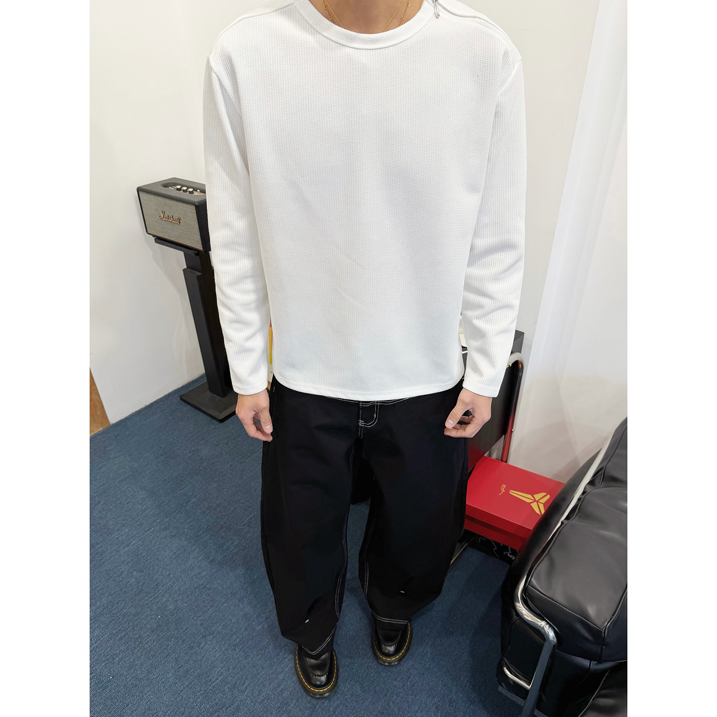 淘宝BurnBro肌理感拉链圆领长袖t恤男女纯色宽松短宽内搭打底衫上衣潮