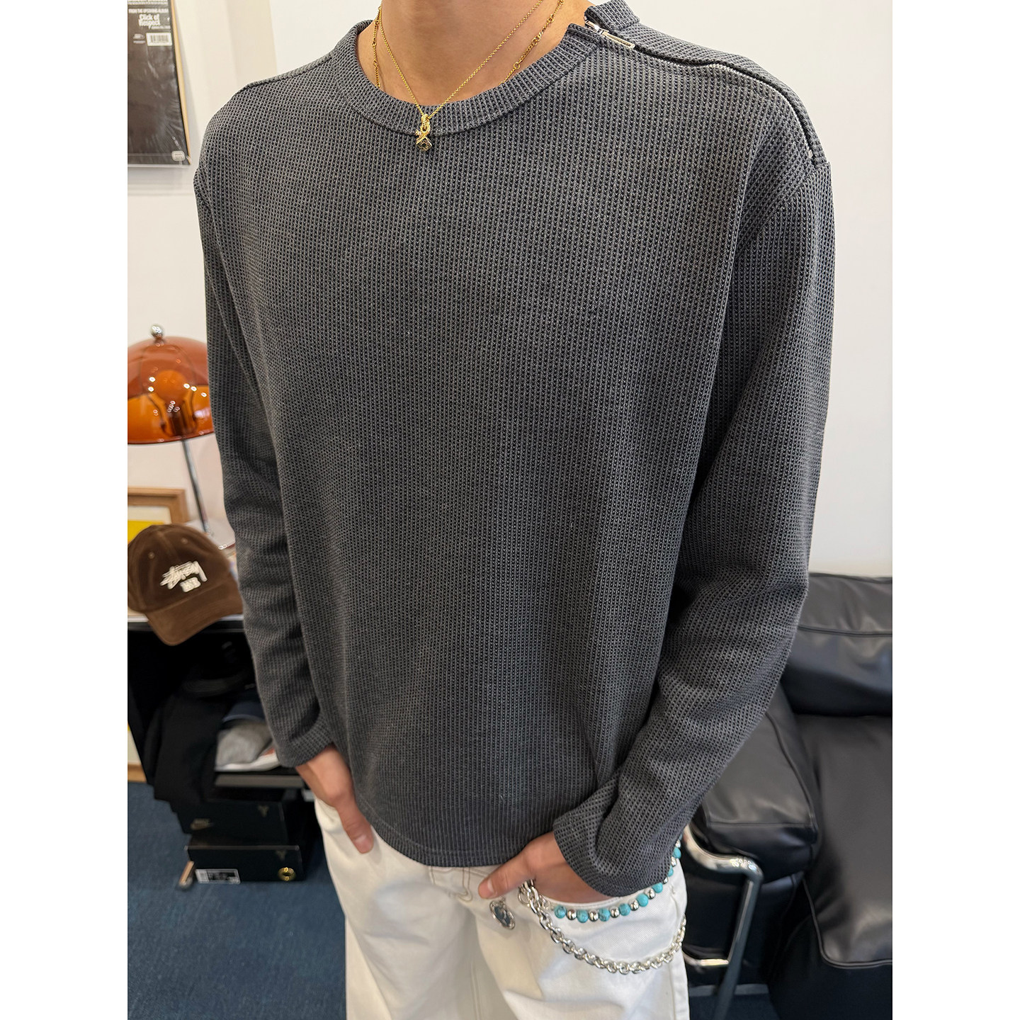 淘MRNEARLY美式复古水洗假两件格子拼接长袖T恤男宽松百搭圆领上衣