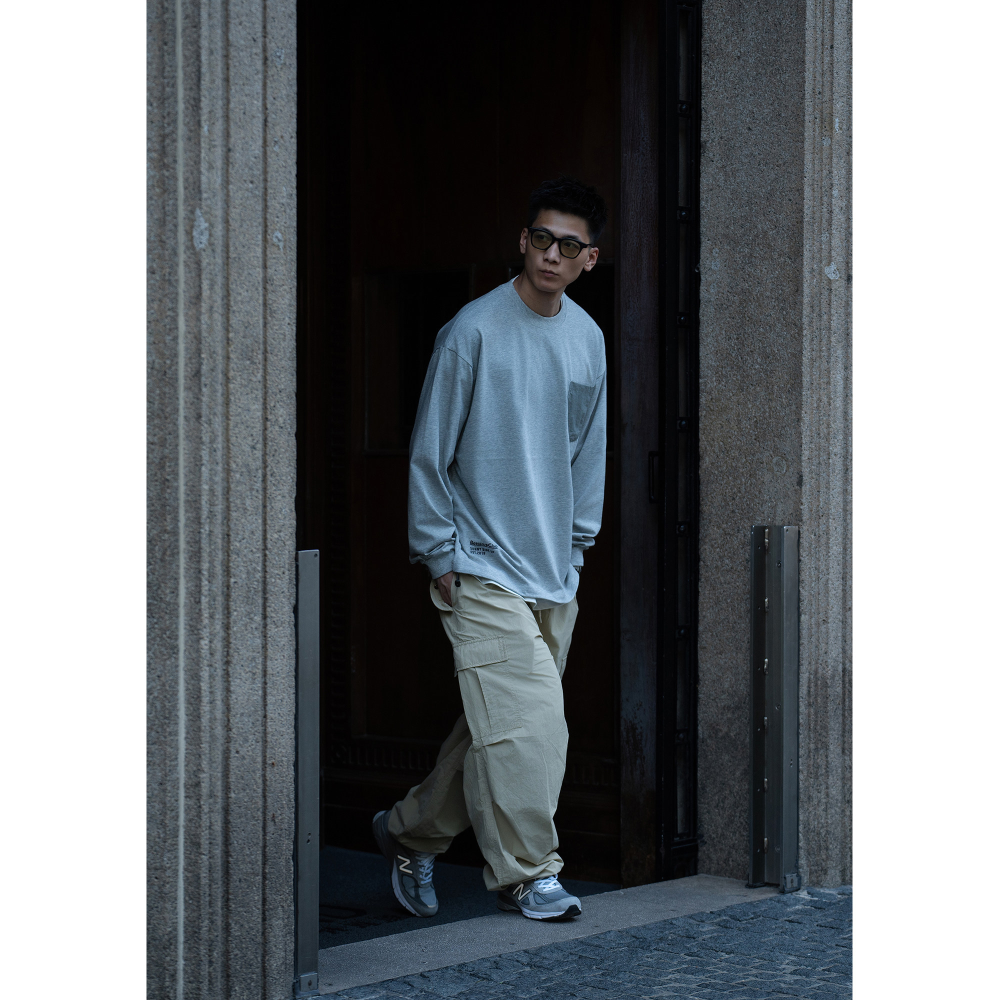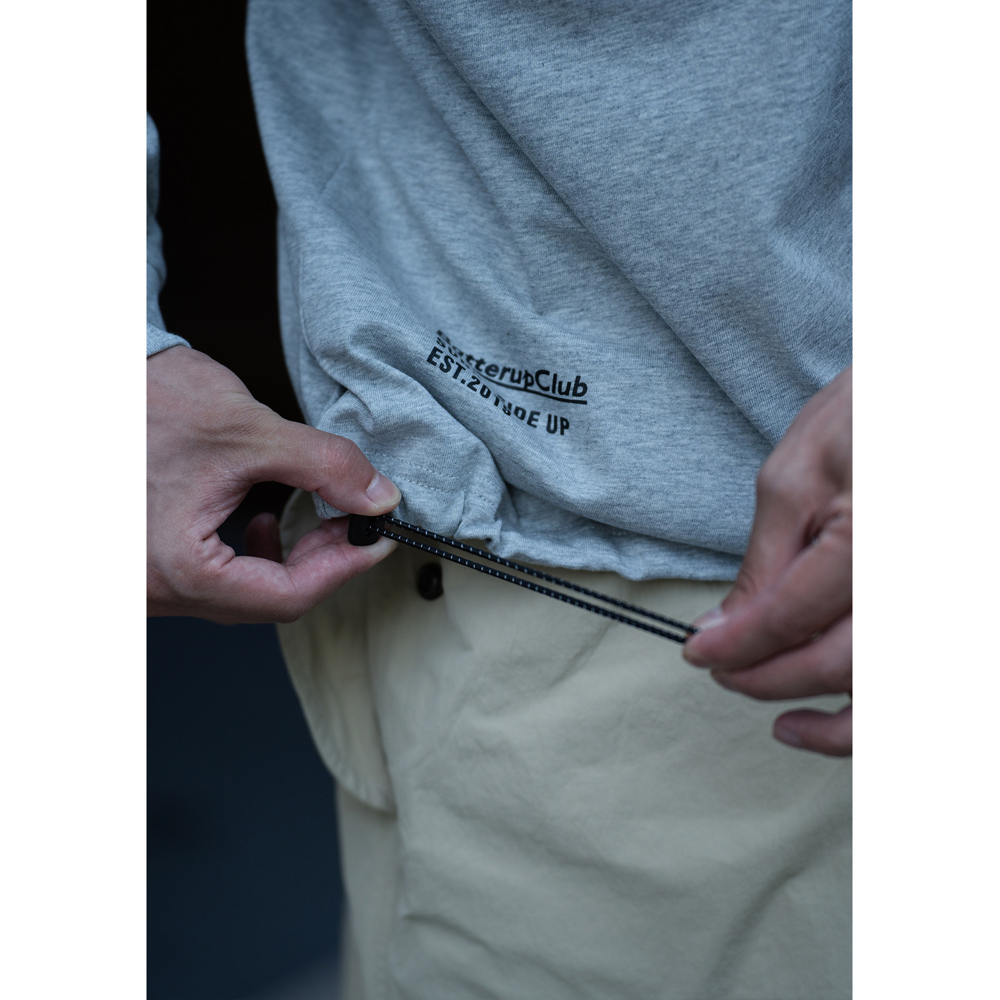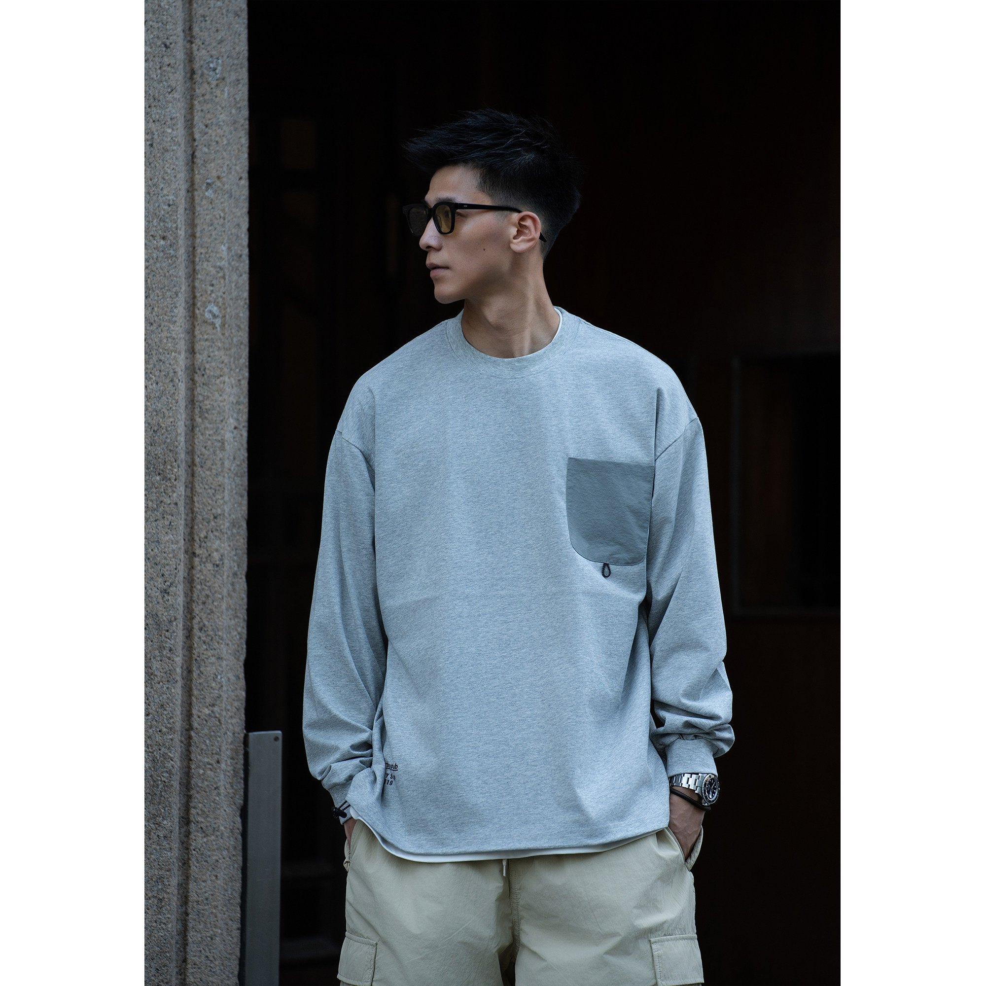 淘宝Batterup2025新款早秋上衣外套宽松抽绳花灰色口袋休闲长袖T恤男