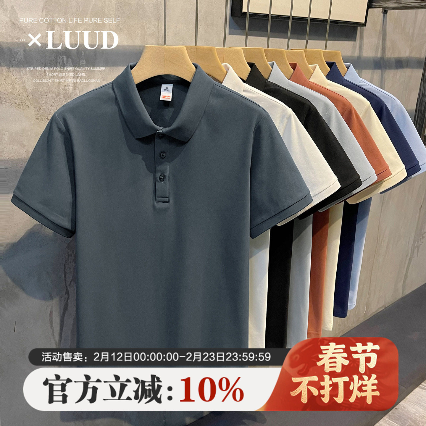 淘宝LUUD 气质纯色修身短袖POLO衫男士复古2025夏季短袖翻领T恤上衣潮
