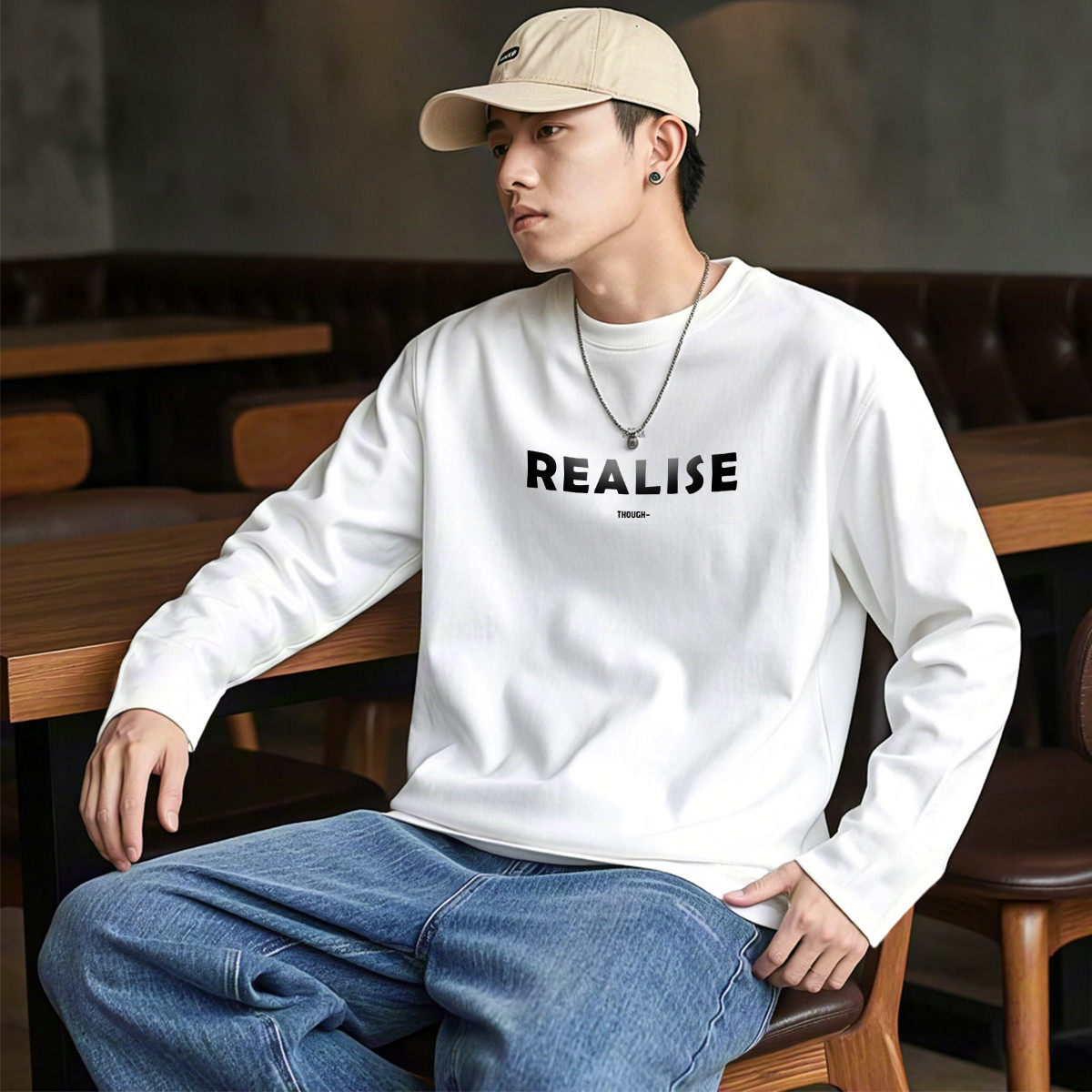 纯棉t恤男士长袖印花圆领全棉内搭秋冬双面德绒打底衫加绒秋衣服
