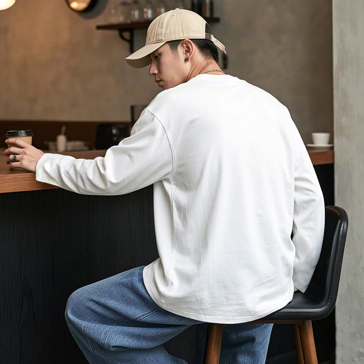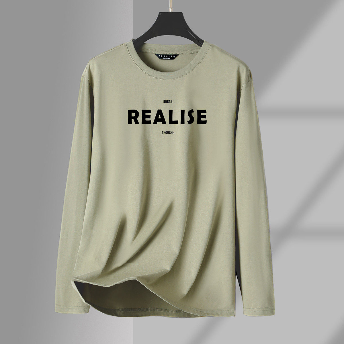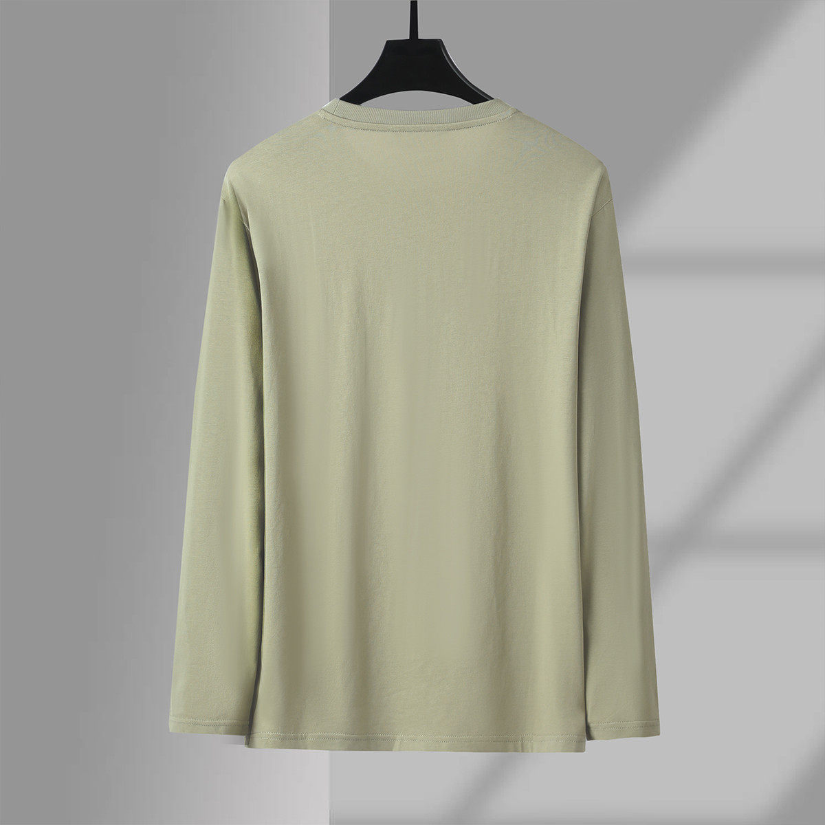 100%新疆棉男士T恤长袖春秋季宽松大码上衣打底衫纯色体恤秋衣