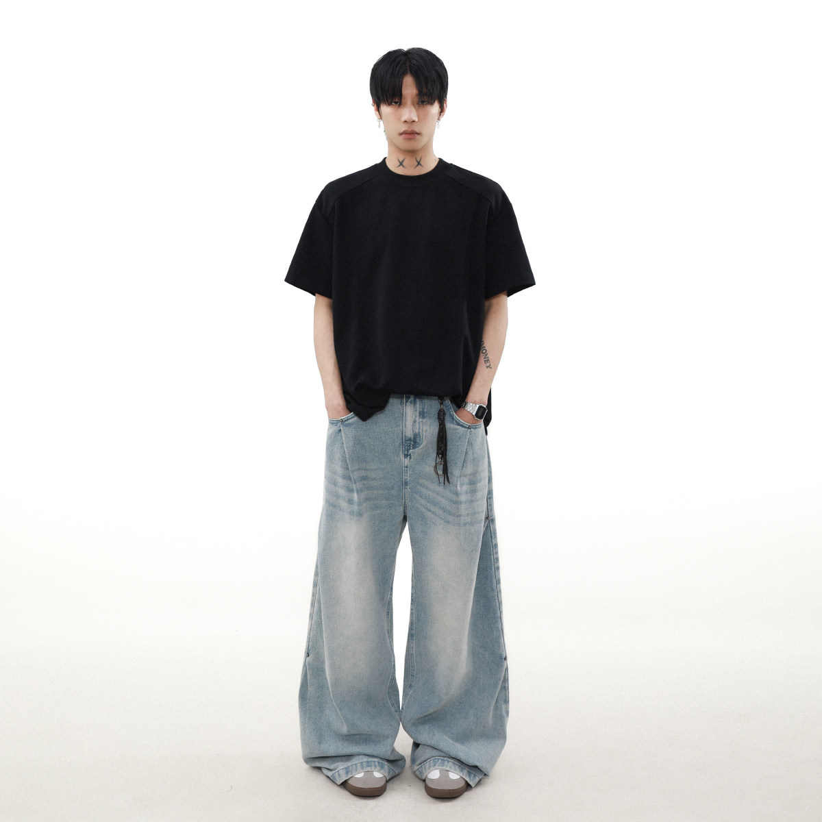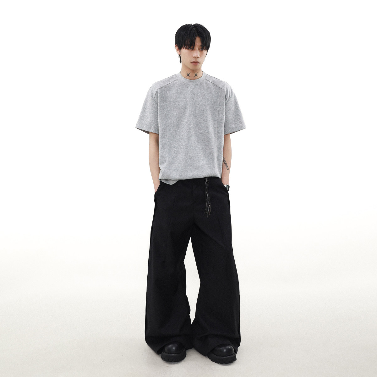 淘宝MRNEARLY美式复古解构设计感纯色短袖T恤男宽松简约休闲上衣潮