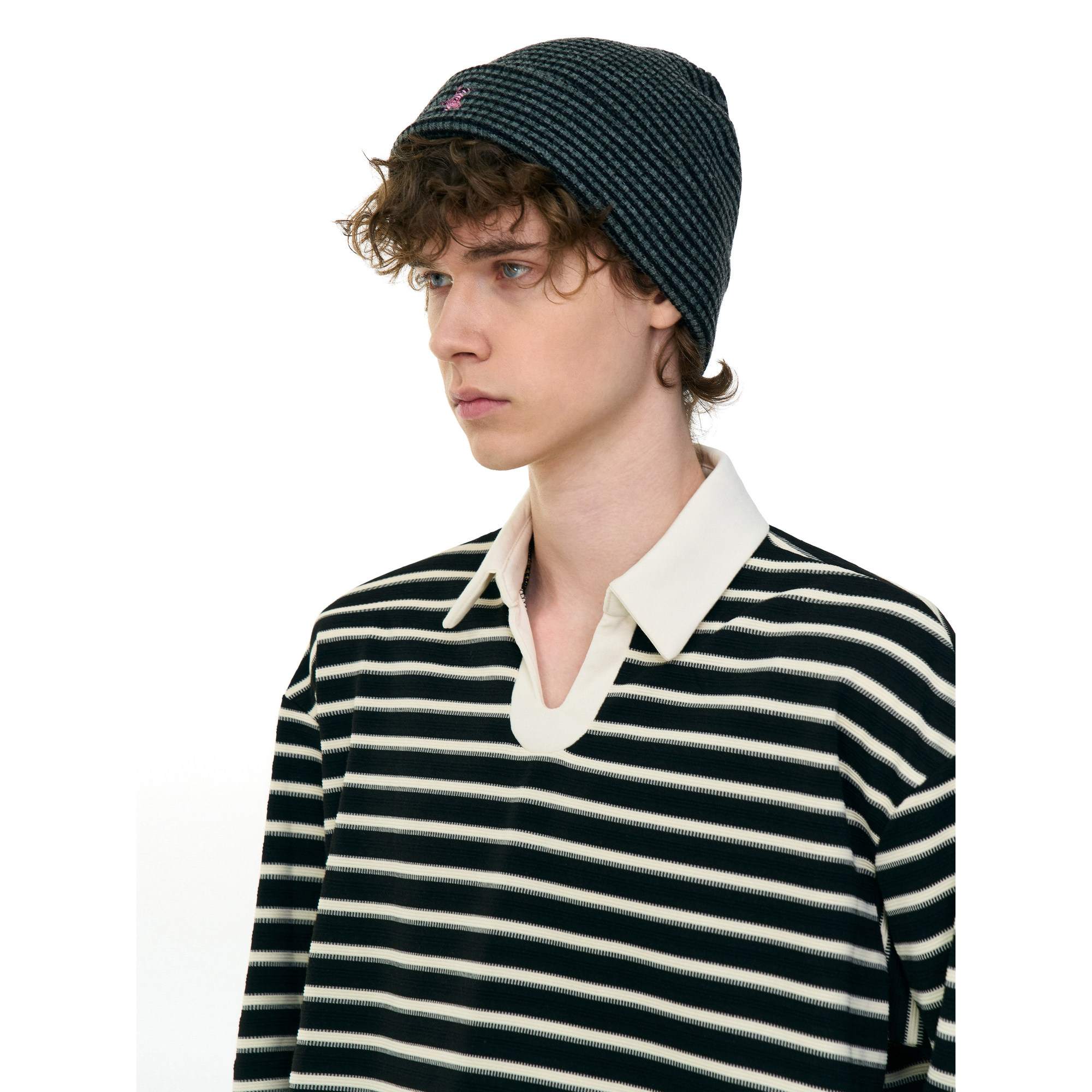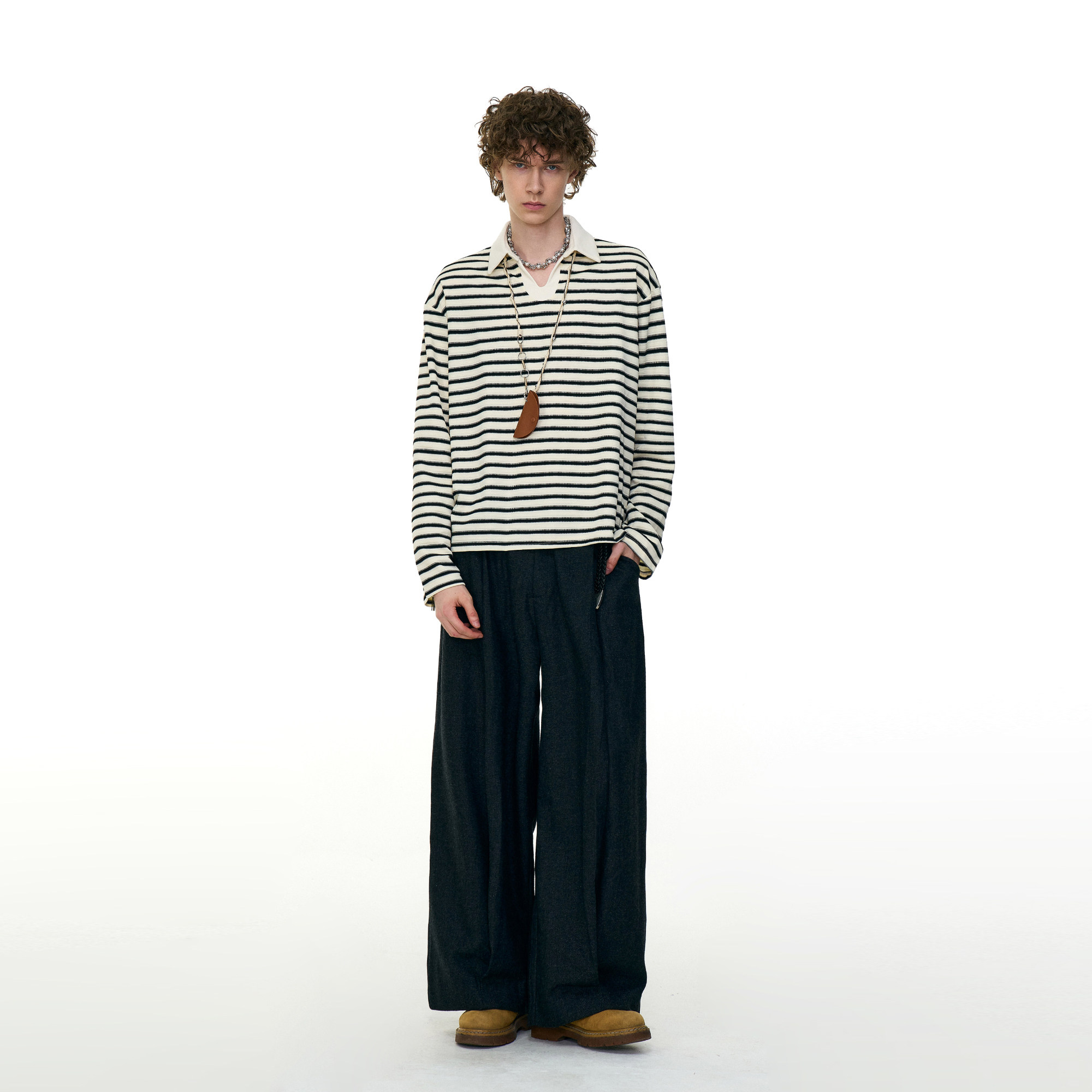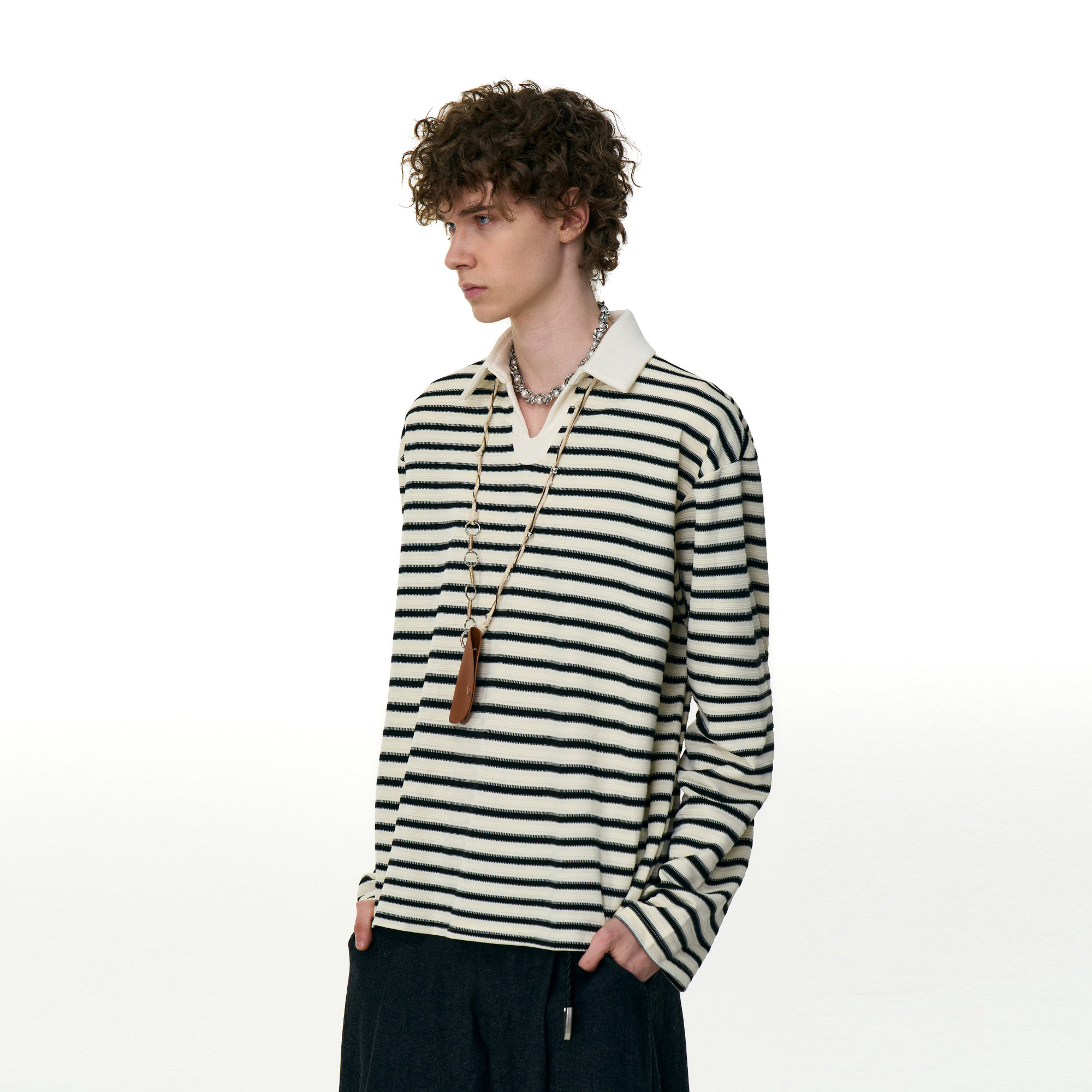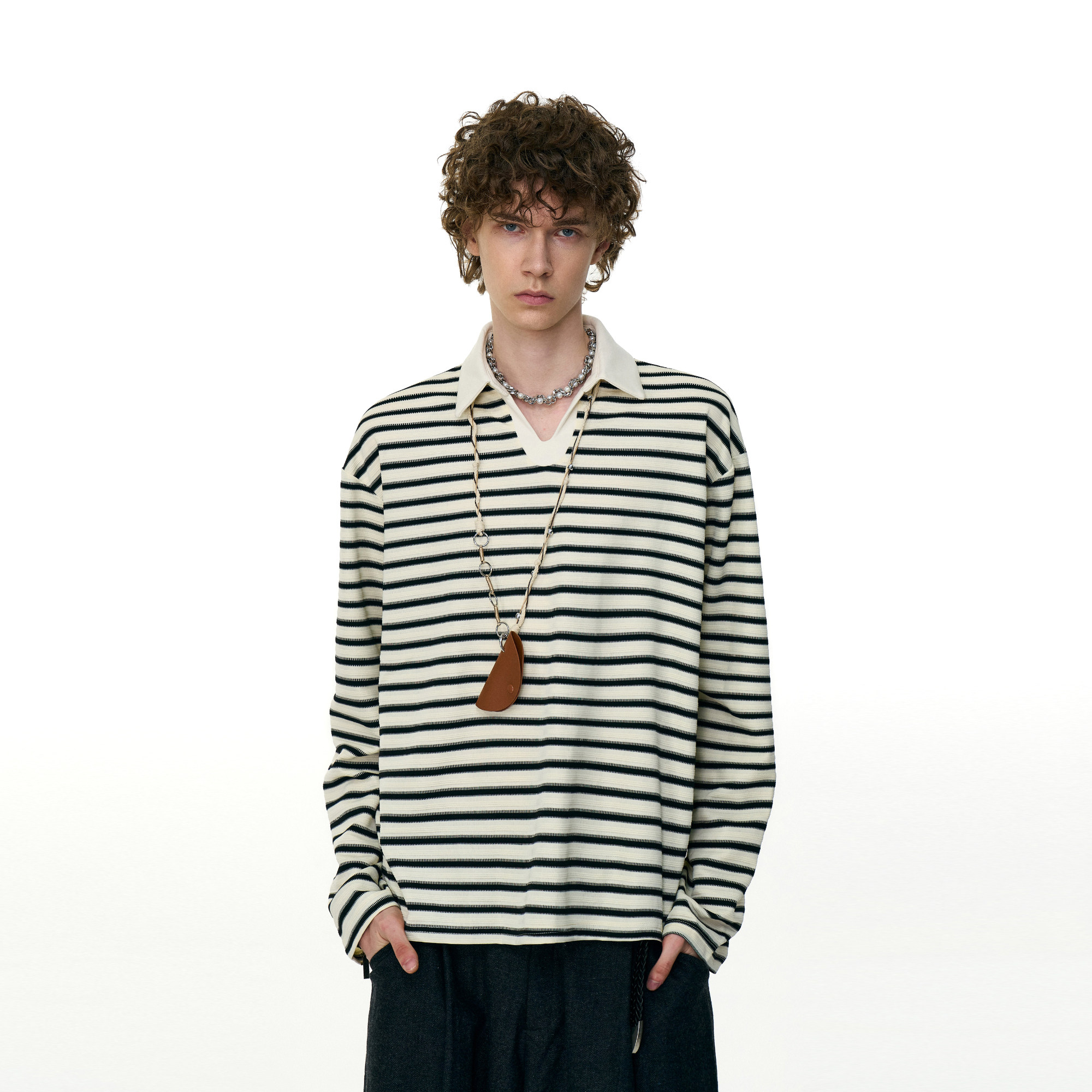 淘宝MRNEARLY 美式休闲条纹polo衫翻领长袖T恤男女秋季老钱风情侣上衣