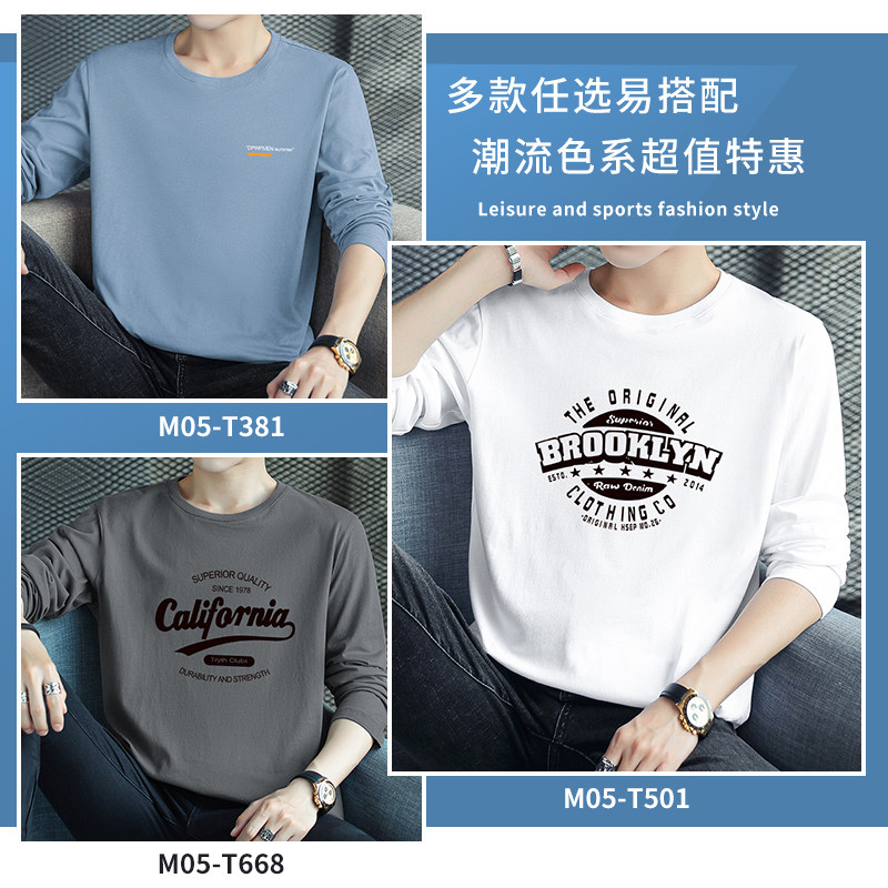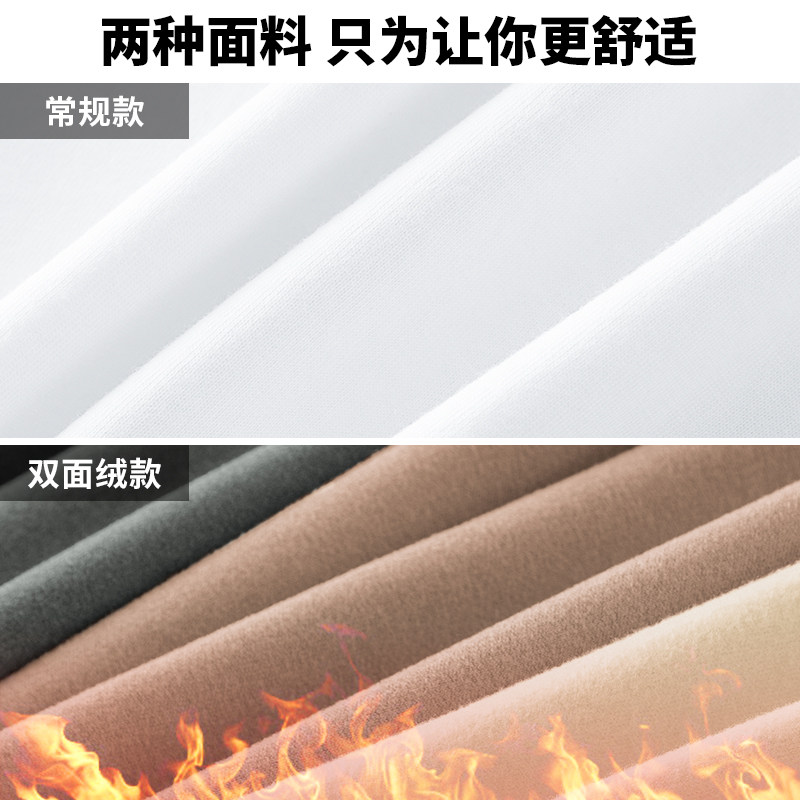 天猫纯棉t恤男士长袖印花圆领全棉内搭秋冬双面德绒打底衫加绒秋衣服
