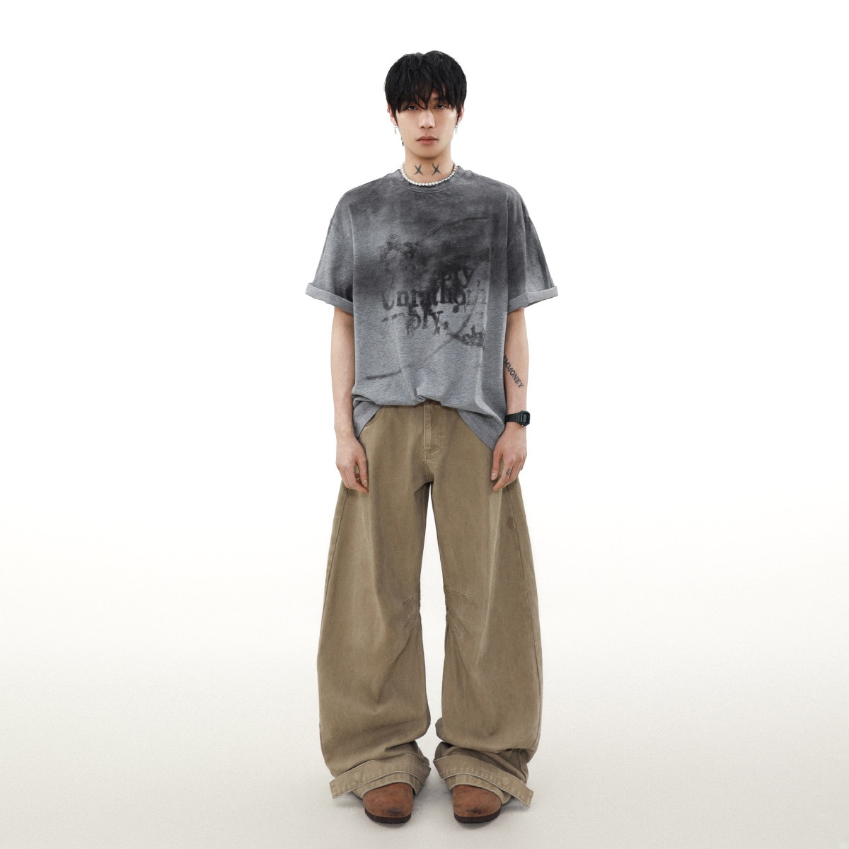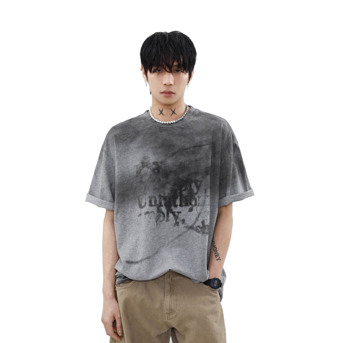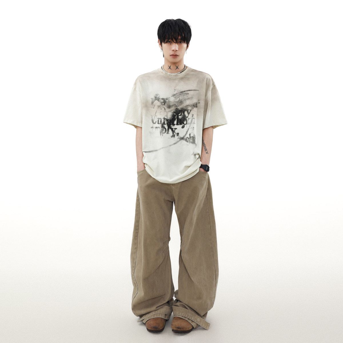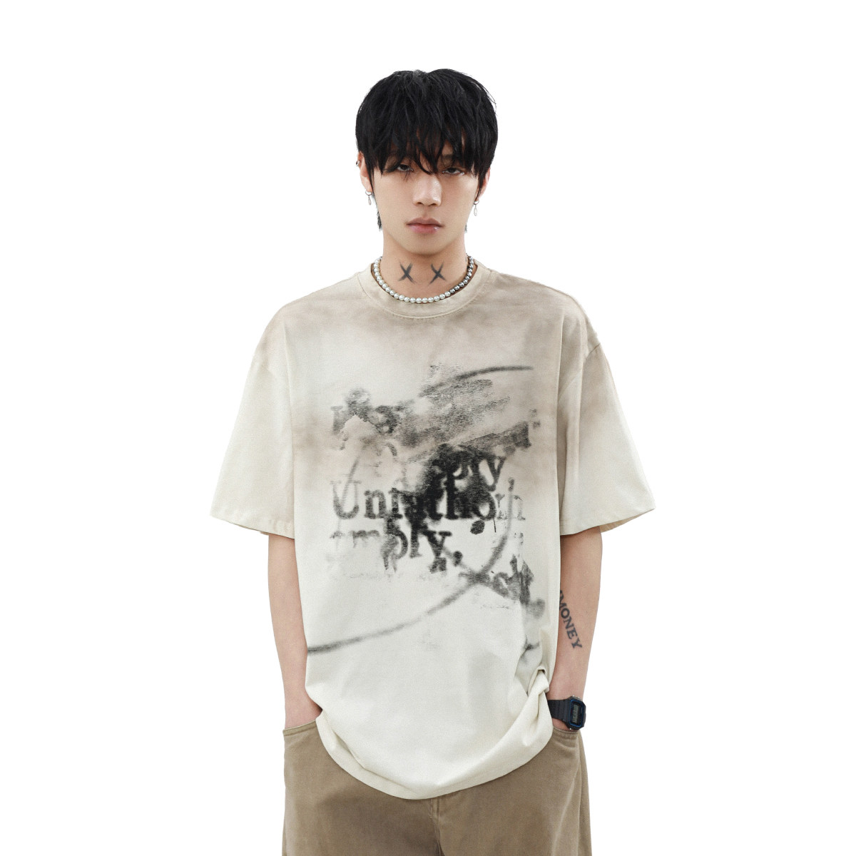 淘宝MRNEARLY 美式小众脏染涂鸦情侣装短袖T恤男宽松重磅复古半袖上衣