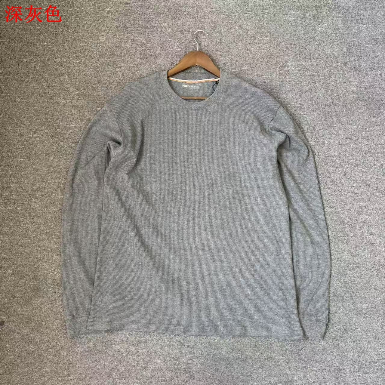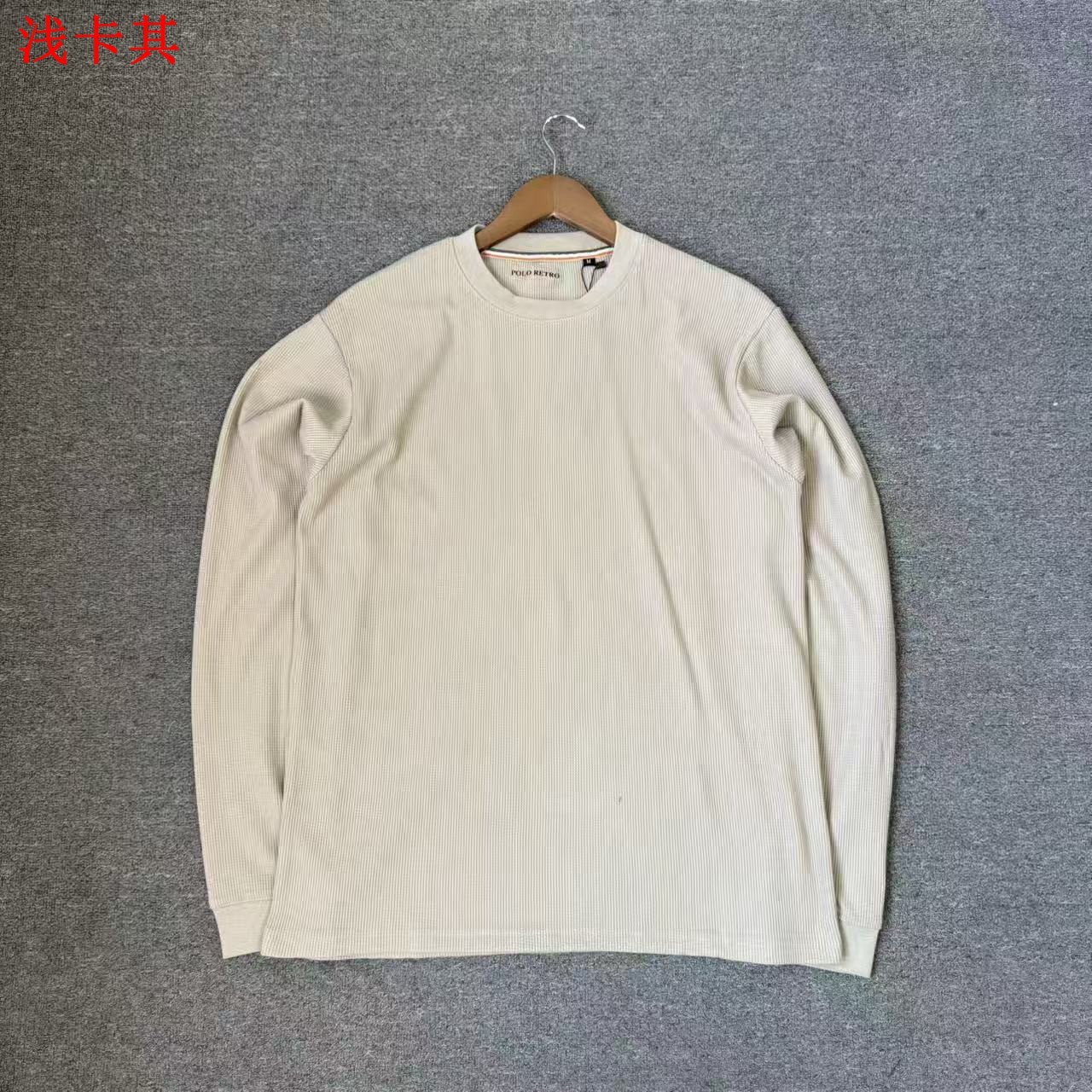 淘宝飞姐外贸小铺一级性价比 65棉华夫格面料男圆领纯色净版长袖T恤