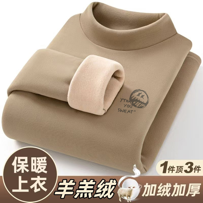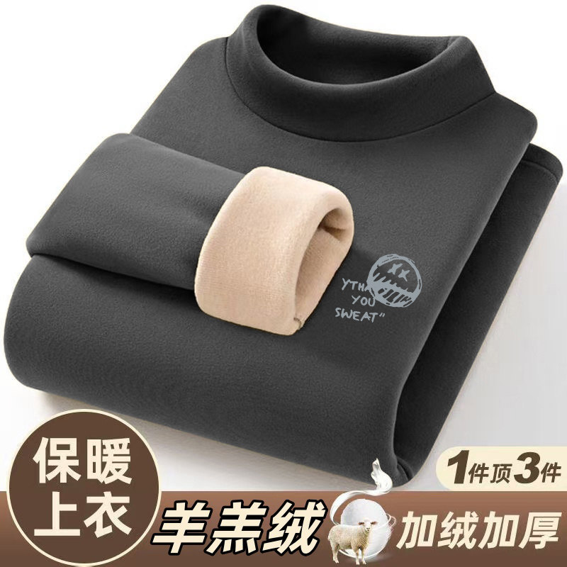 天猫秋冬季德绒打底衫男修身加绒加厚羊羔绒长袖t恤大码男装保暖内衣