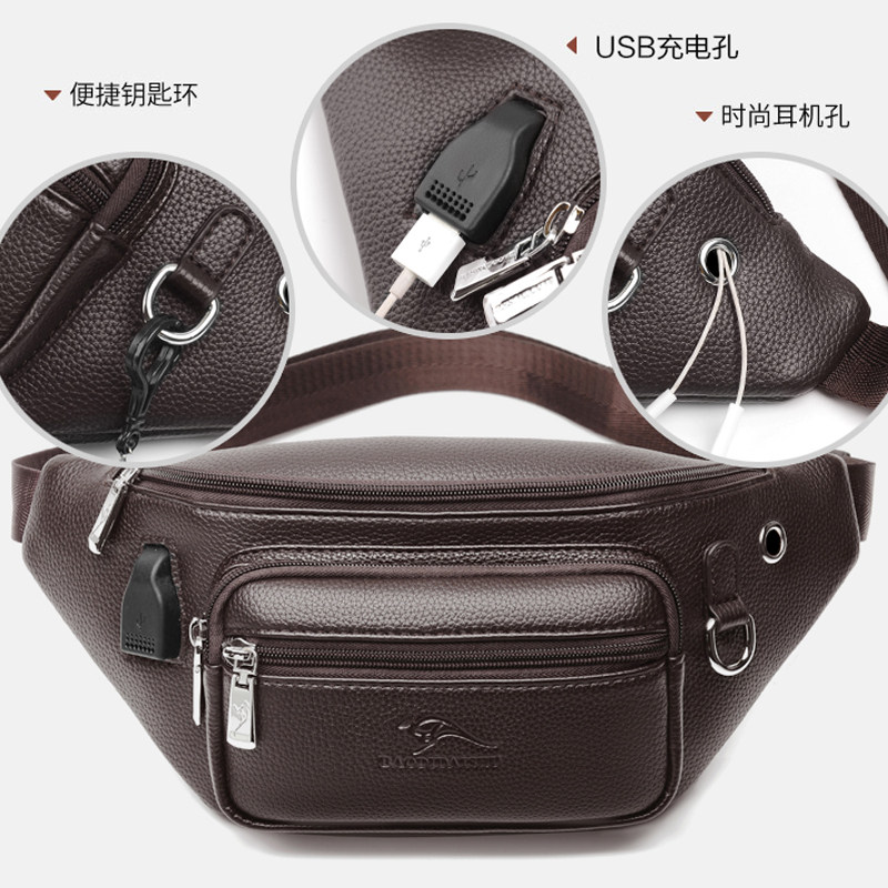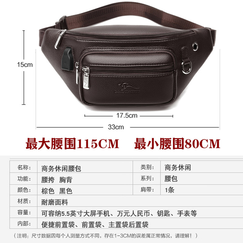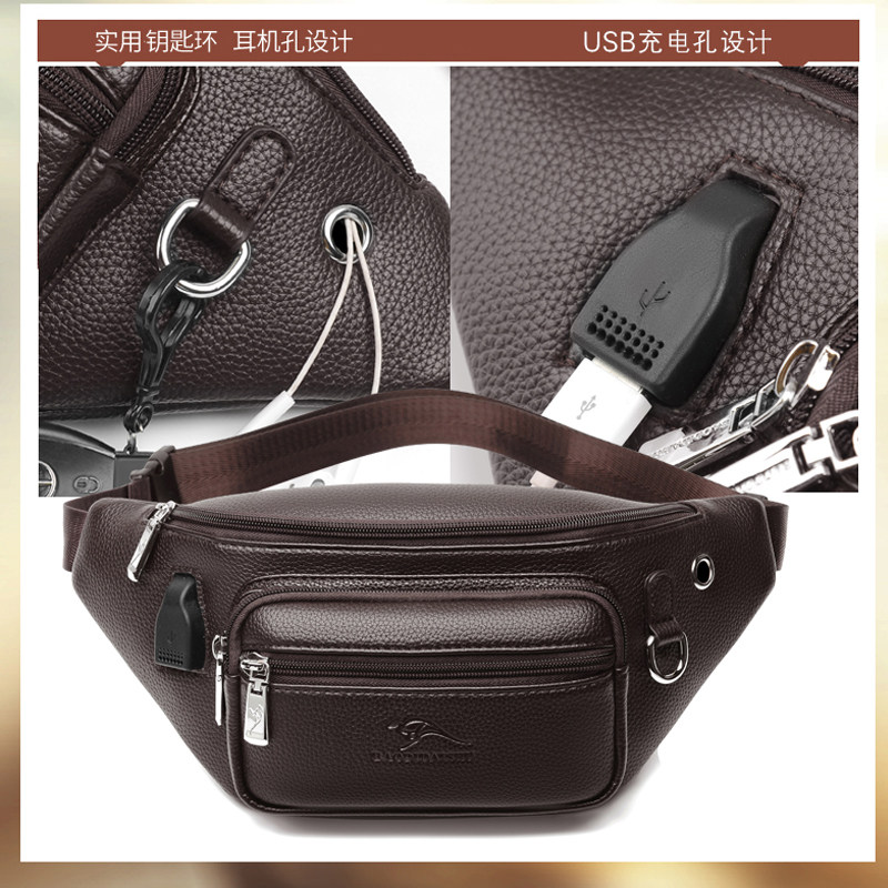 淘宝宝谛袋鼠皮腰包牛皮胸包多功能手机包小包大容量男士单肩斜挎包