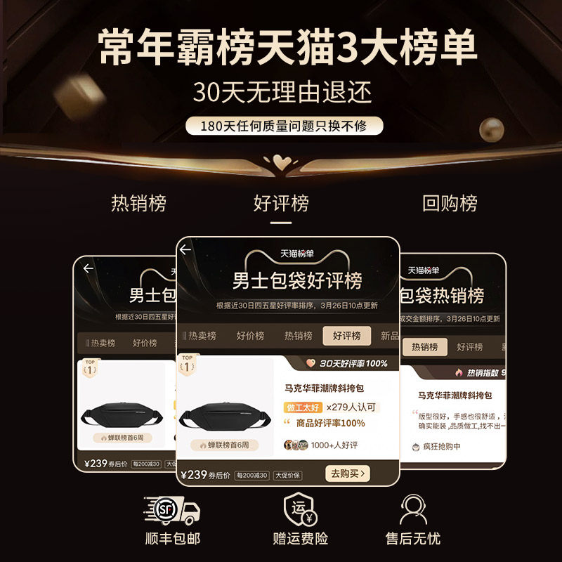 天猫【天猫惊喜盒】马克华菲胸包男款斜挎包休闲腰包男士单肩包小挎包