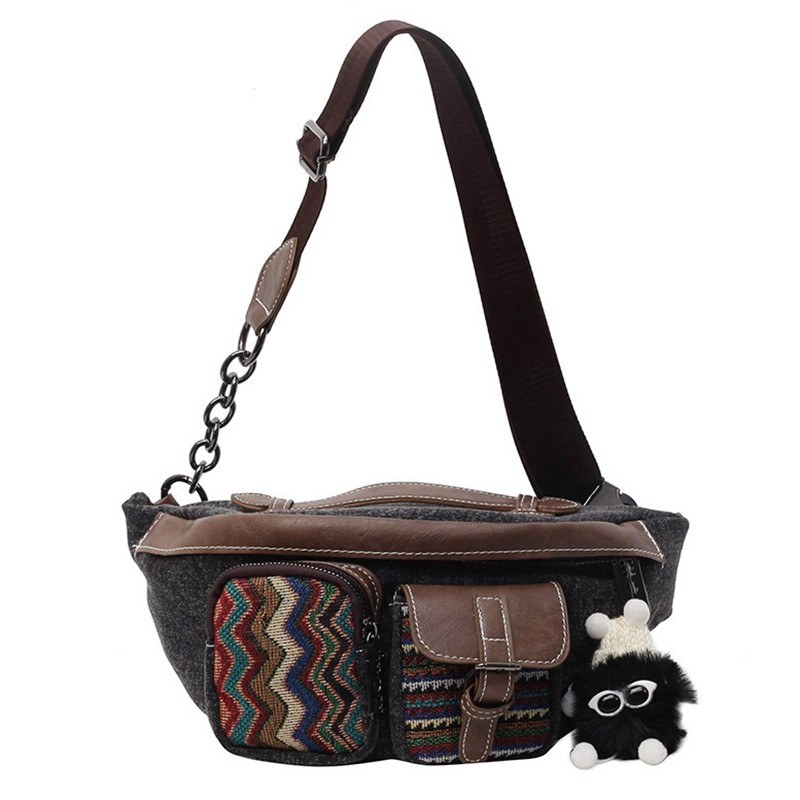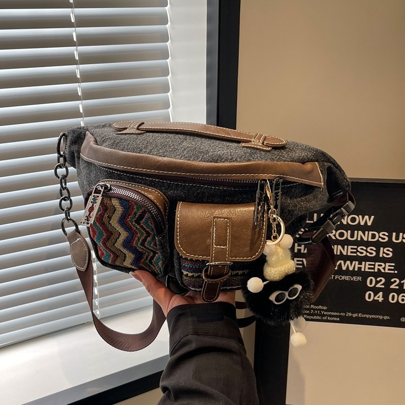 淘宝复古牛仔帆布胸包女斜挎腰包民族风大容量秋冬休闲潮流斜背饺子包