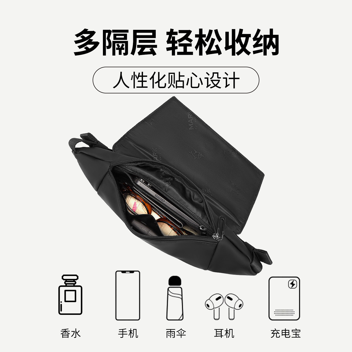 天猫马克华菲斜挎包男款机能单肩包背包休闲通勤男士包包潮牌胸包腰包