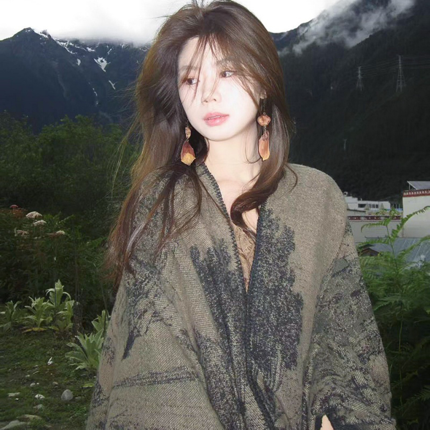 淘宝川西云南旅游民族风披肩女秋冬新疆西藏海边外搭围巾披风斗篷穿搭