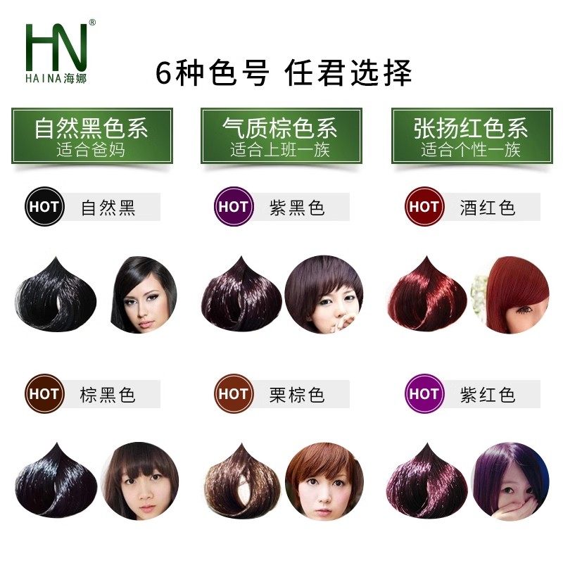 天猫海娜植物染发剂自己在家染发海娜黑色栗棕色紫色海娜粉染头发膏