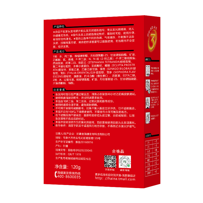 海娜染发剂植物天然无刺激3盒装海纳染发霜染色染发膏女官网 正品